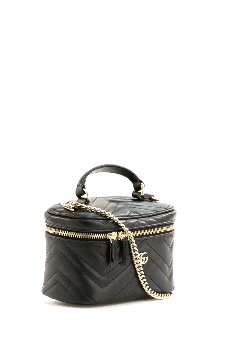 Borsa Vanity GG Marmont Composizione: 100% pelle di vitello. Prodotta in Italia. Misure: larghezza 19 cm x altezza 11,5 cm x profondità 9 cm