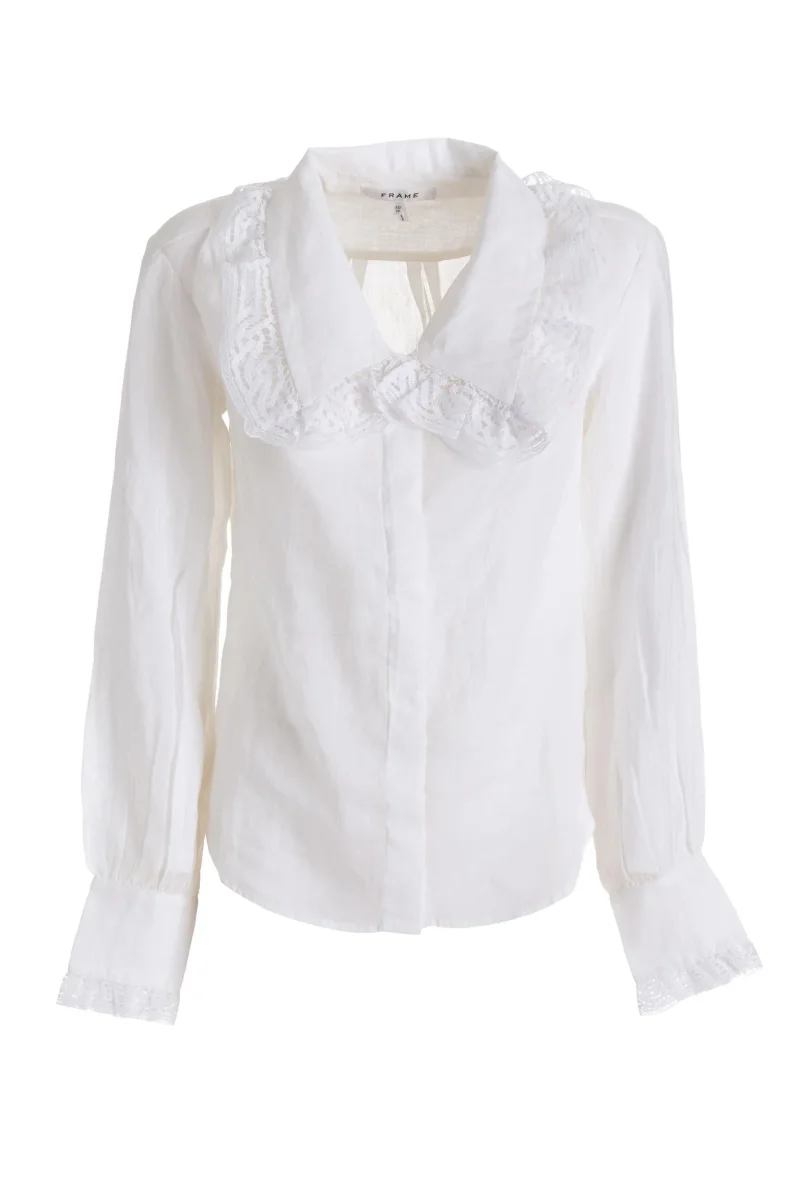 Camicia con Colletto in Pizzo in 100% ramia. Prodotta in India. La vestibilità dell’articolo corrisponde alla taglia indicata