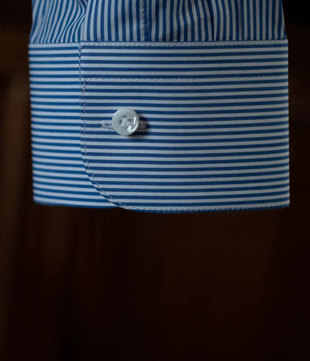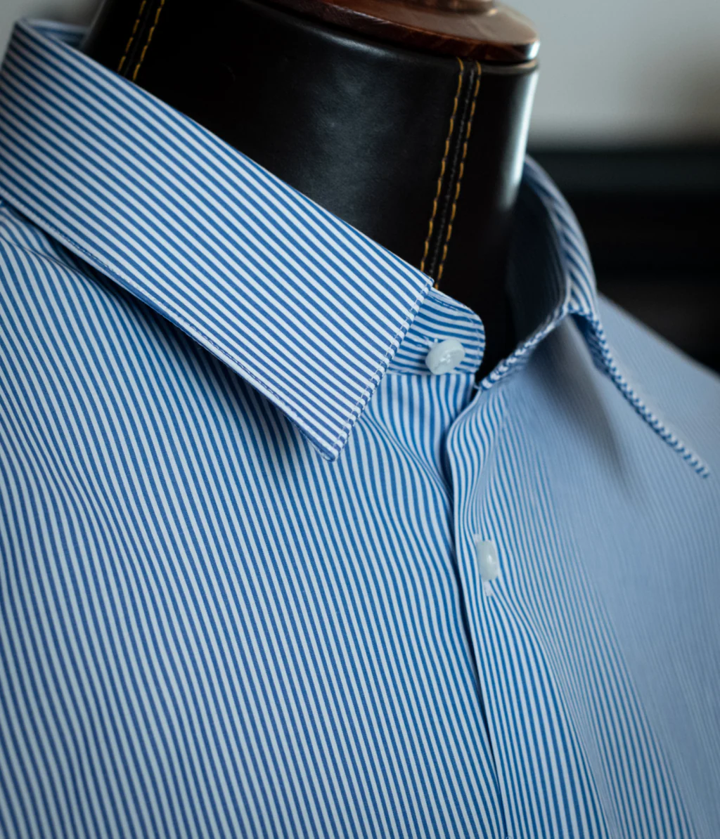 Camicia Bianca e Blu Bacchettata: Eleganza Business Multifunzionale