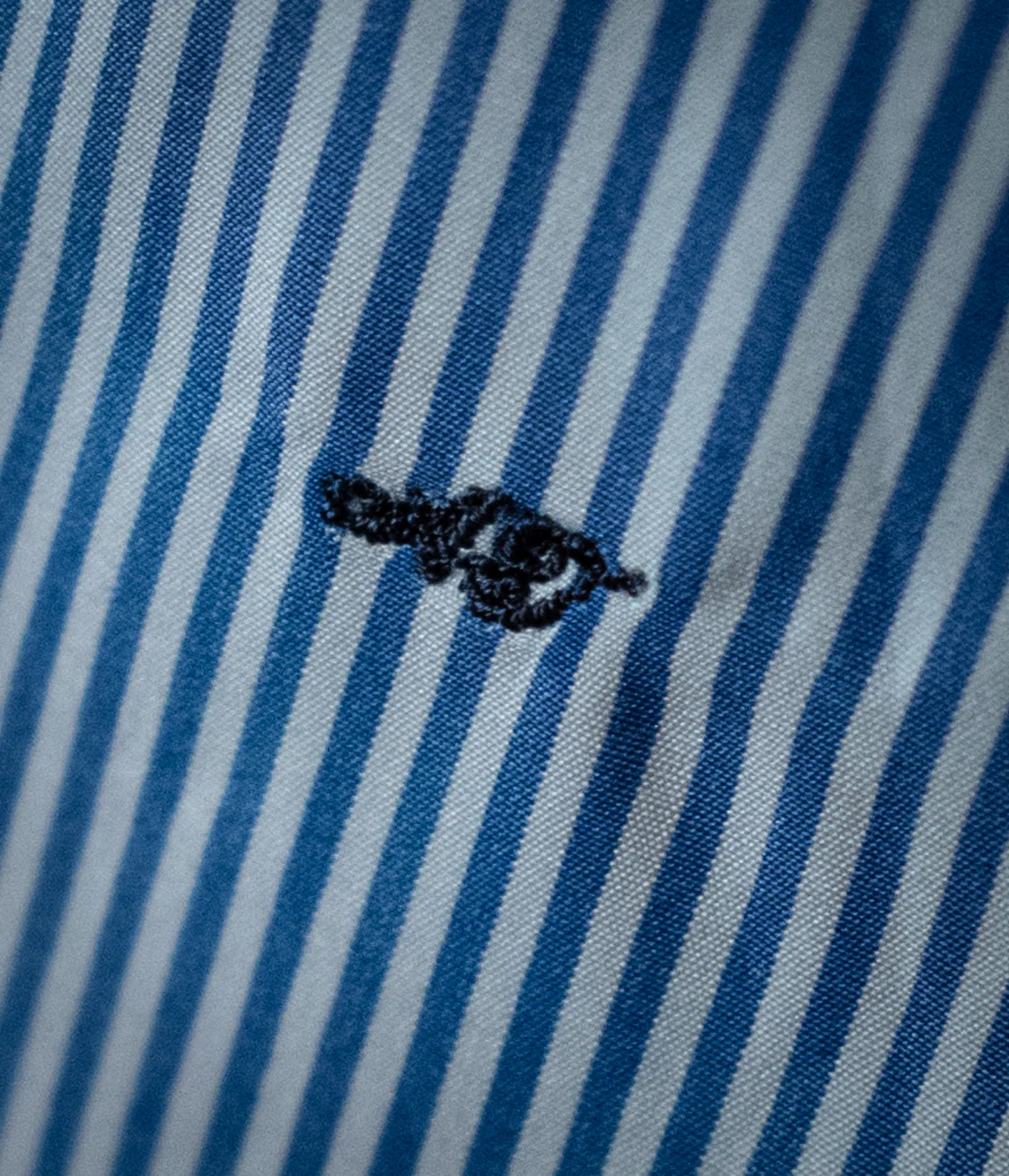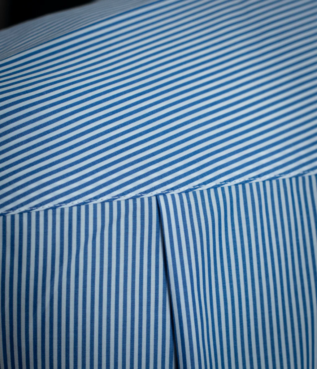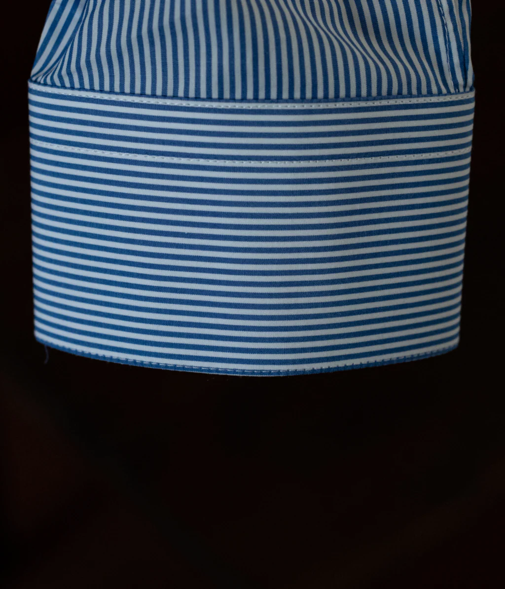 - Tessuto Bianco e Blu Bacchettato in Cotone: Comfort e traspirabilità, freschezza e stile.