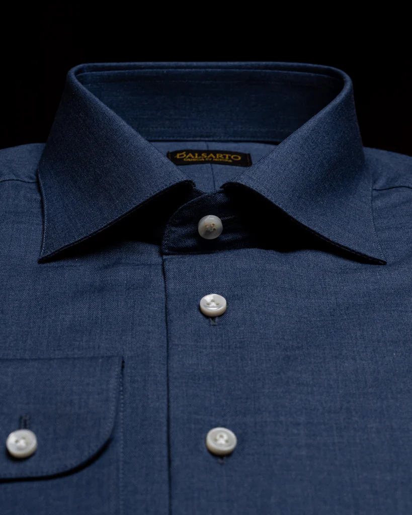 - Cannello Scoperto: Dettaglio artigianale di alta qualità, il cannello scoperto evidenzia l’attenzione al dettaglio e la cura nella produzione della camicia.