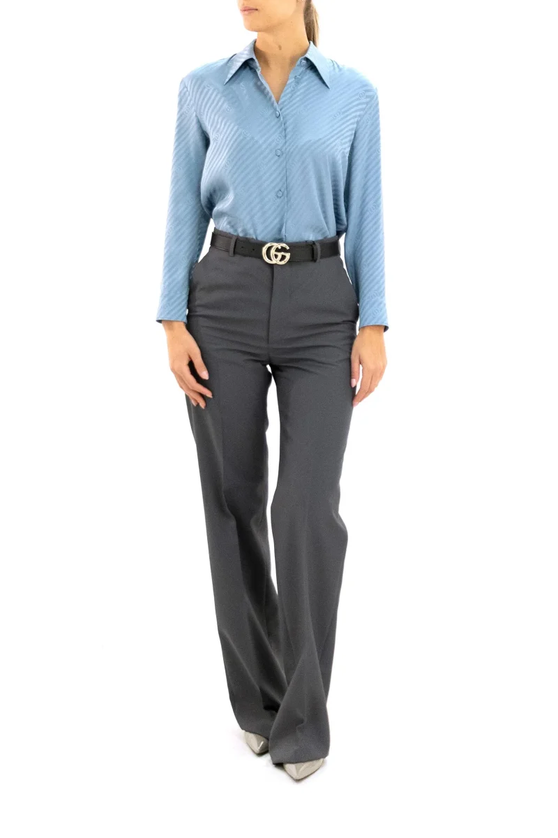 Camicia in seta jacquard GG color azzurro Composizone: 100% seta. MADE IN ITALY.