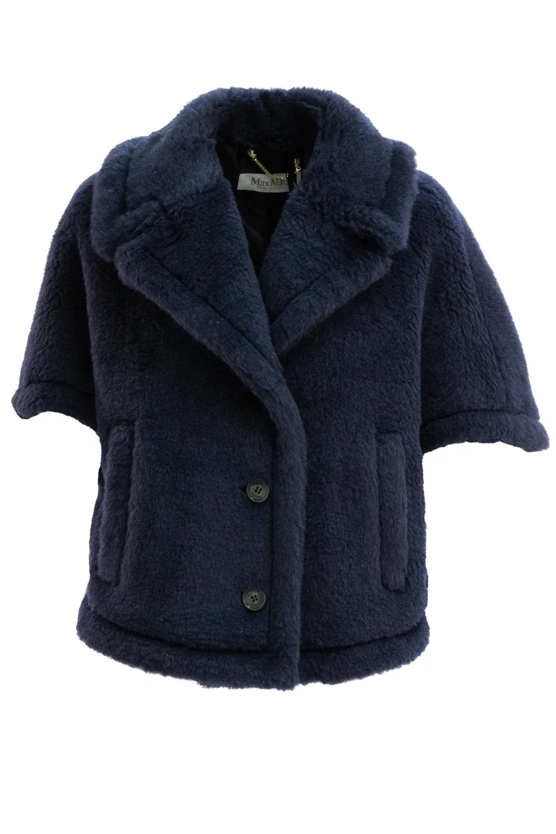 Cappa Teddy in alpaca e lana di colore blu Composizione: 62% alpaca 26% lana vergine 12% seta; fodera: 100% viscosa. MADE IN ITALY.