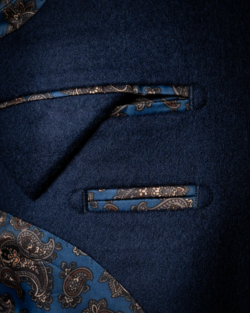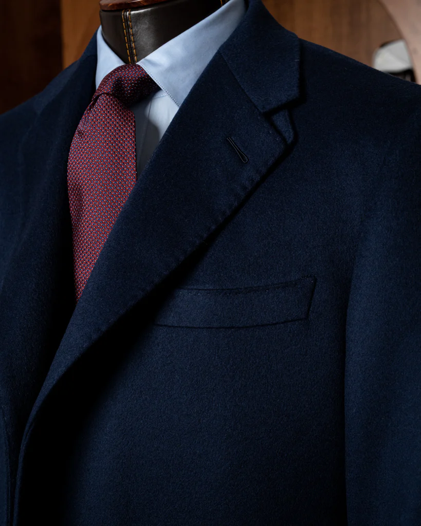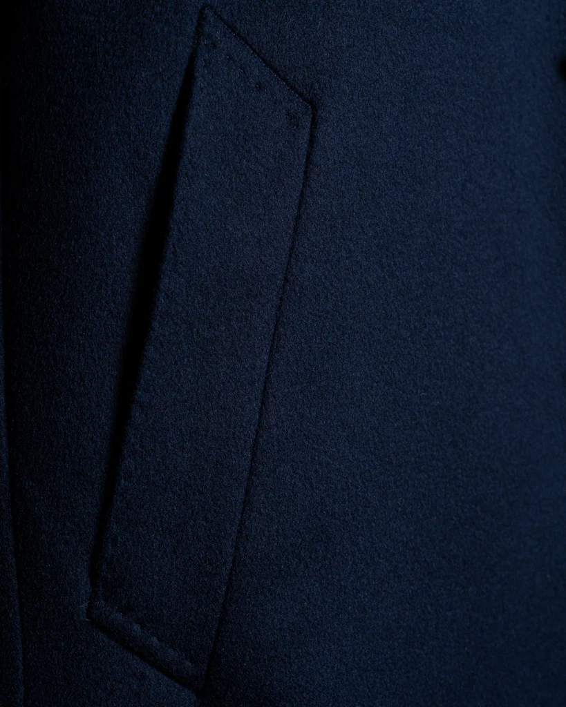 - Tessuto: 100% Pura Lana o Blend Lana-Cashmere ad alta grammatura. La mano è calda, piena e dotata di una naturale resilienza alle pieghe, garantendo un aspetto sempre ordinato.