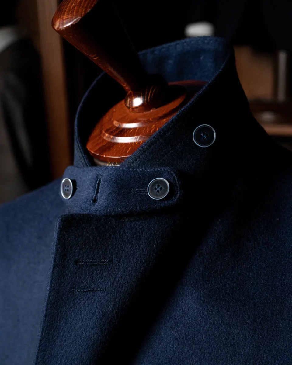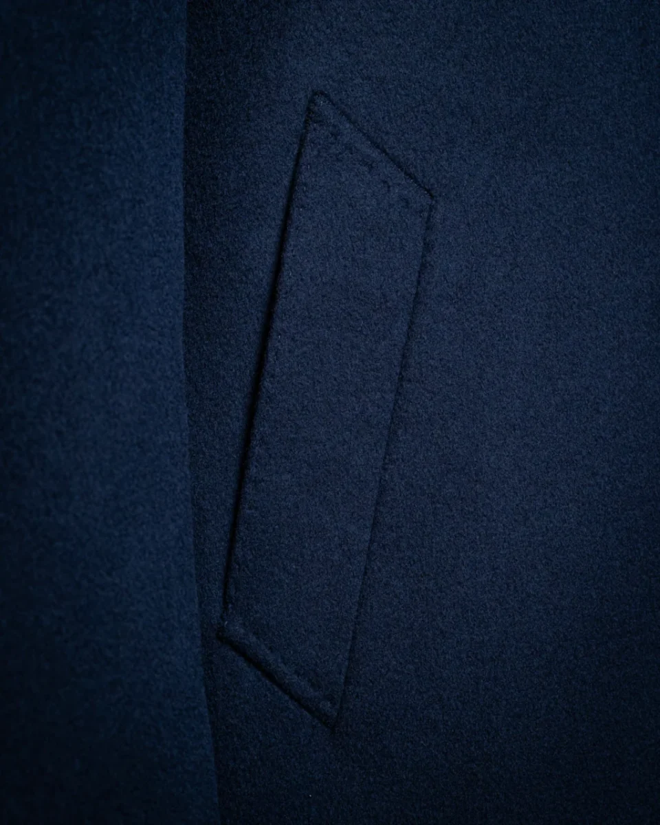 Questo modello incarna la versatilità del cappotto cittadino per eccellenza. La chiusura a tre bottoni e il rever classico proporzionato creano una silhouette slanciata e sobria, ideale per chi cerca un capospalla che non sovrasti l’outfit ma lo completi con distinzione. Il tessuto blu profondo, dalla mano calda e scattante, garantisce una caduta impeccabile, rendendo questo cappotto il compagno perfetto per le mattine in città e le serate più formali.