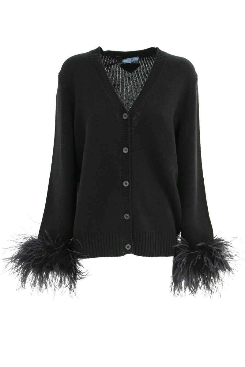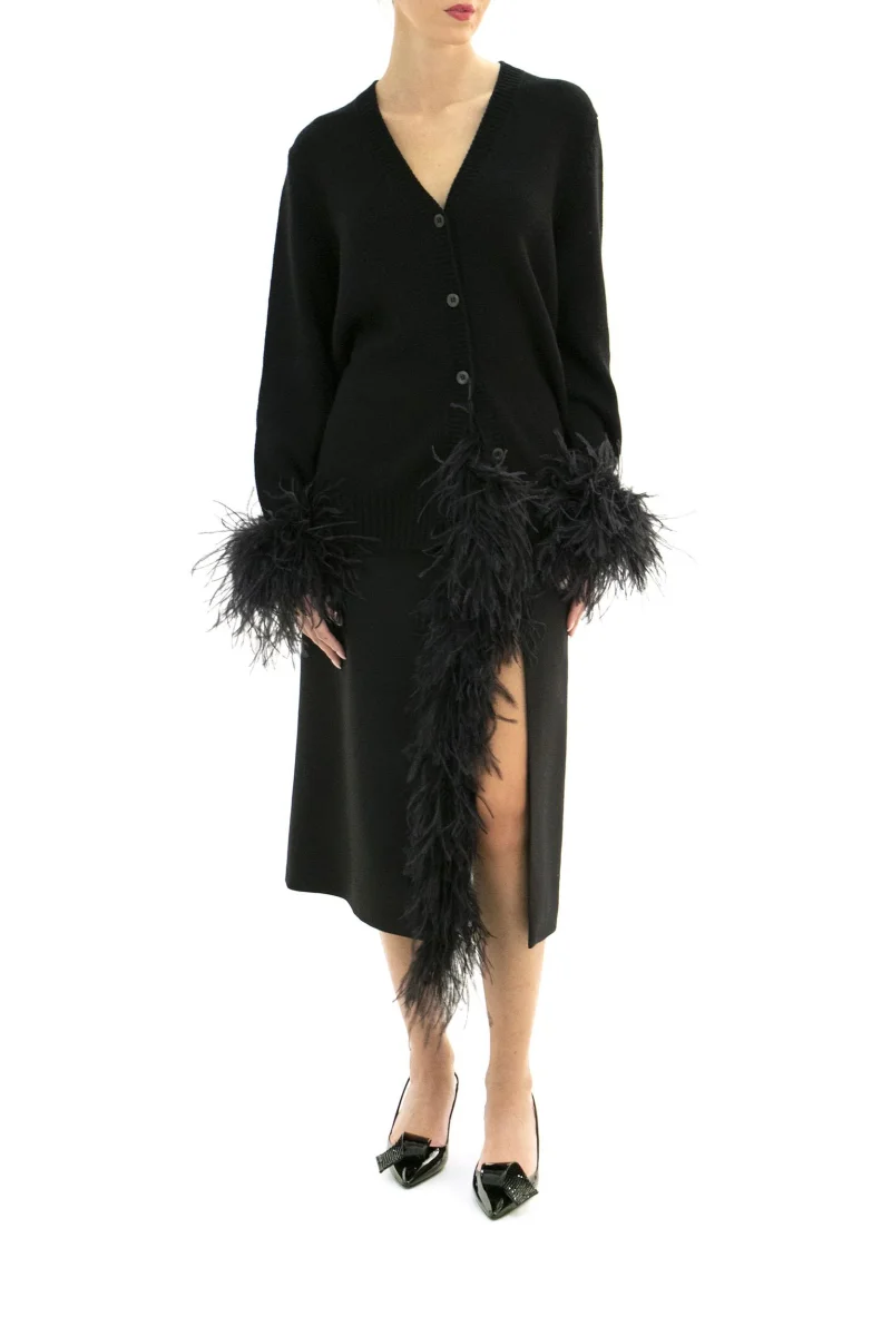 Cardigan Composizione: 100% cashmere; decorazioni: piume di tacchino e struzzo.