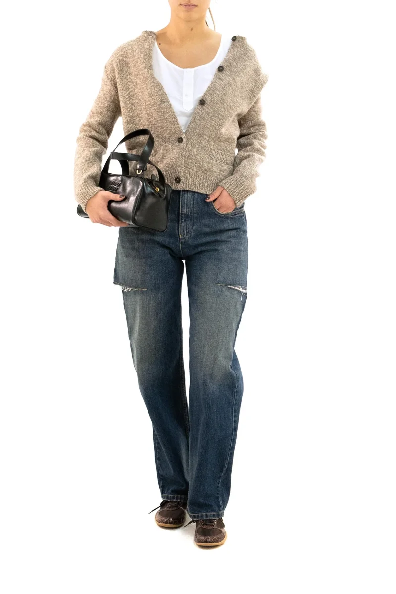Cardigan in lana di colore beige Composizione: 100% lana vergine. MADE IN ITALY.