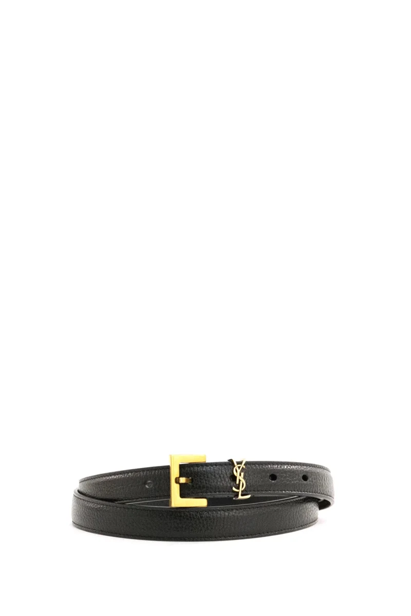 SAINT LAURENT Cintura Cassandre in pelle martellata color nero Composizione: pelle. Altezza: 20 mm. MADE IN ITALY.