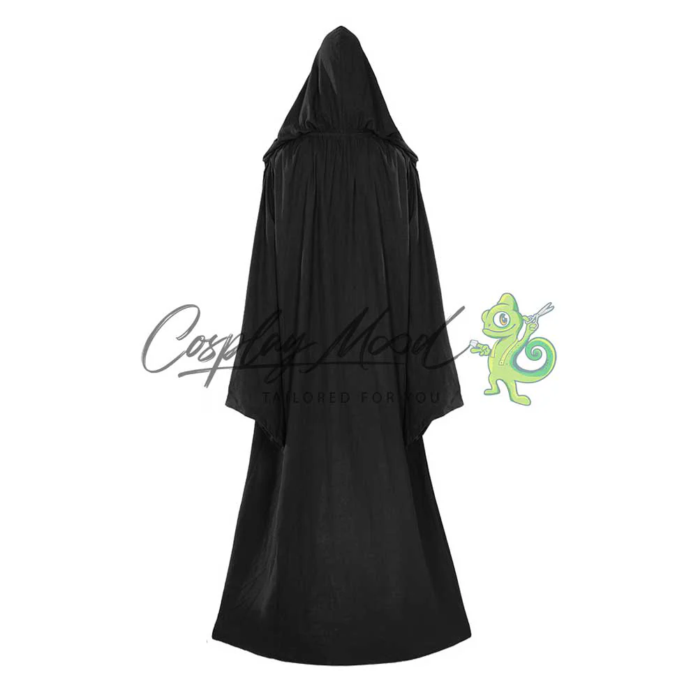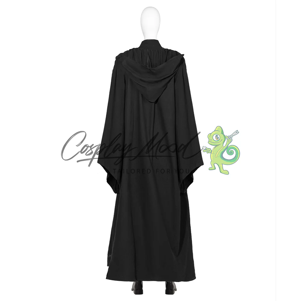 Cappotto lungo nero, veste, sopra veste grigia con rinforzi, cintura marrone con fibbia, guanti e pantaloni marrone chiaro. Stivali coordinati non inclusi (opzionali, acquistabili separatamente).