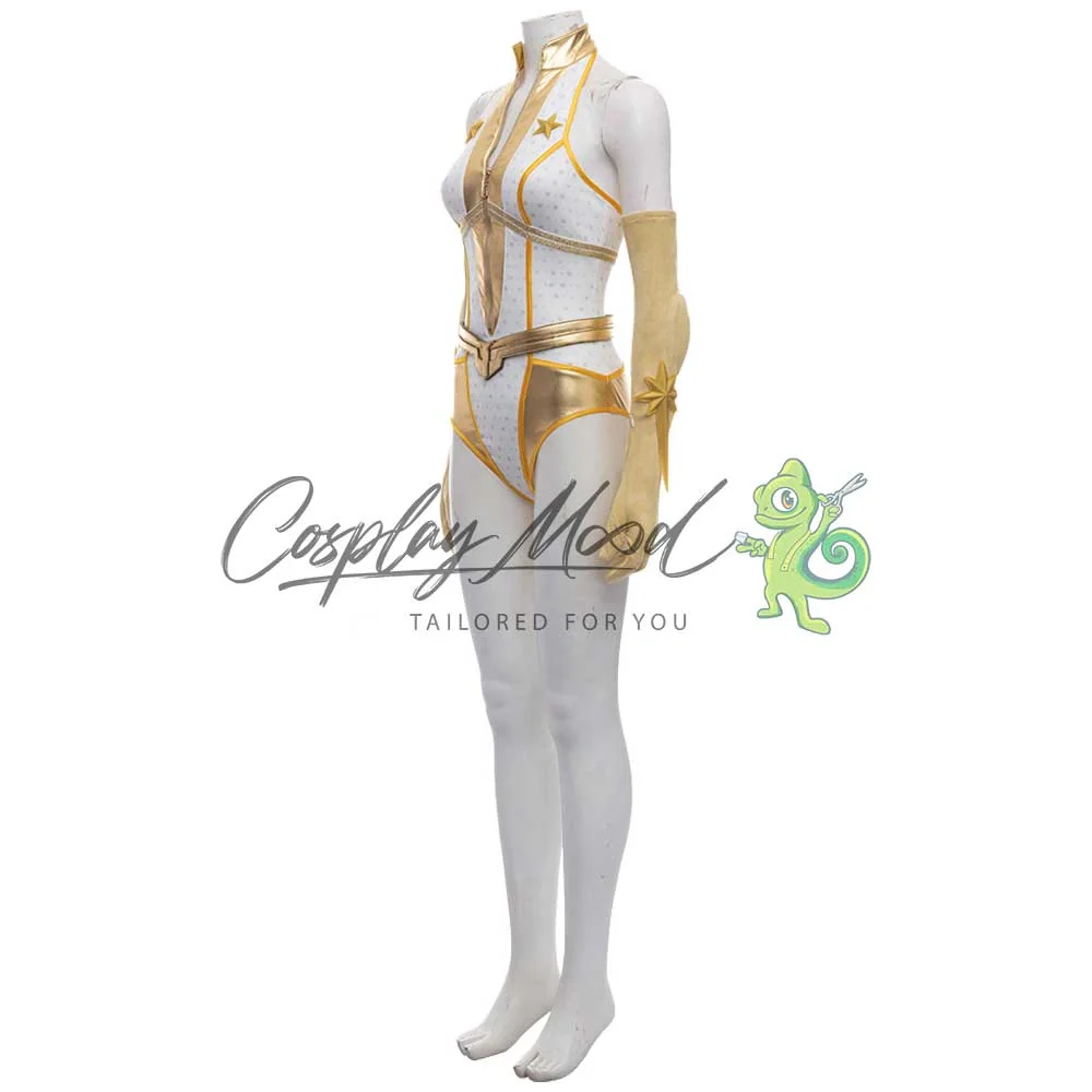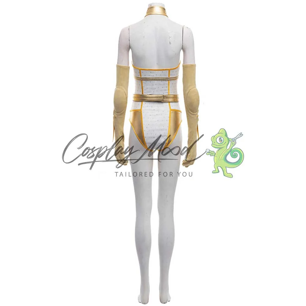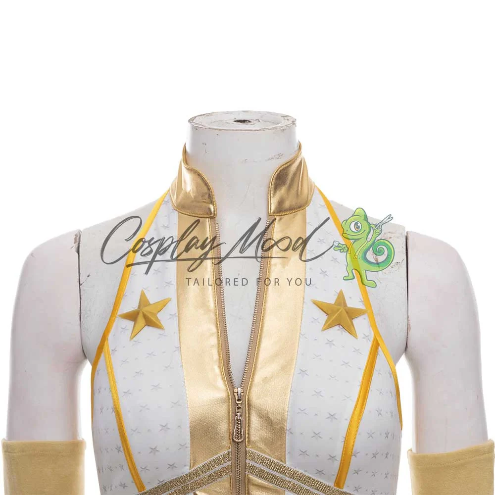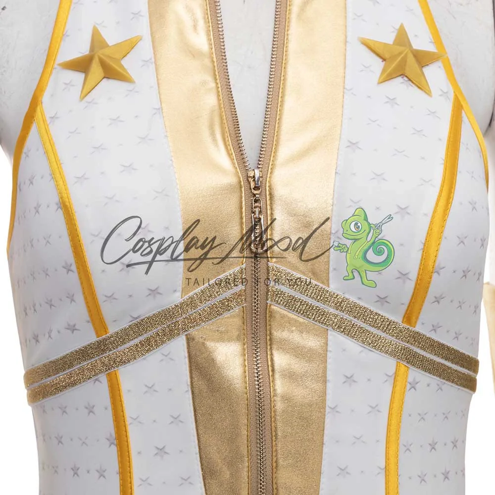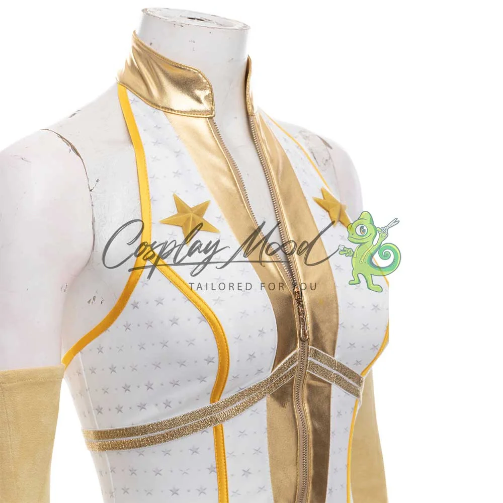 Body bianco e dorato con stelle, cintura dorata, guanti e stivali dello stesso colore, con stelle in rilievo.