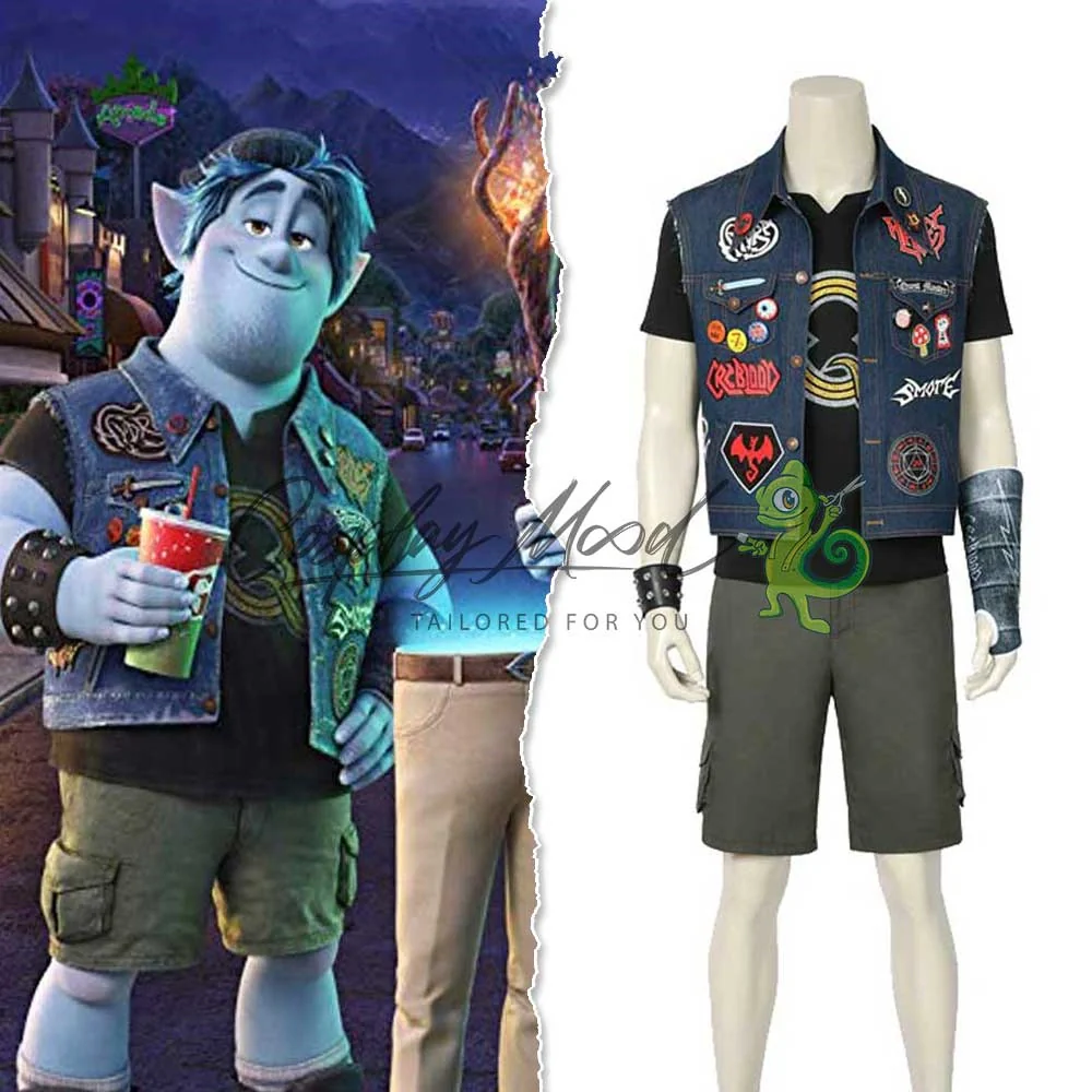 Questo costume cosplay è ispirato a Barley dal film d’animazione Disney Onward, ed è ricreato in maniera molto fedele all’originale in tutti i suoi dettagli. Barley Lightfoot è un grande, corpulento e turbolento elfo di 19 anni, quello che si considererebbe amichevolmente un ragazzone. Ama la magia, il metal ed il gioco di ruolo fantasy.