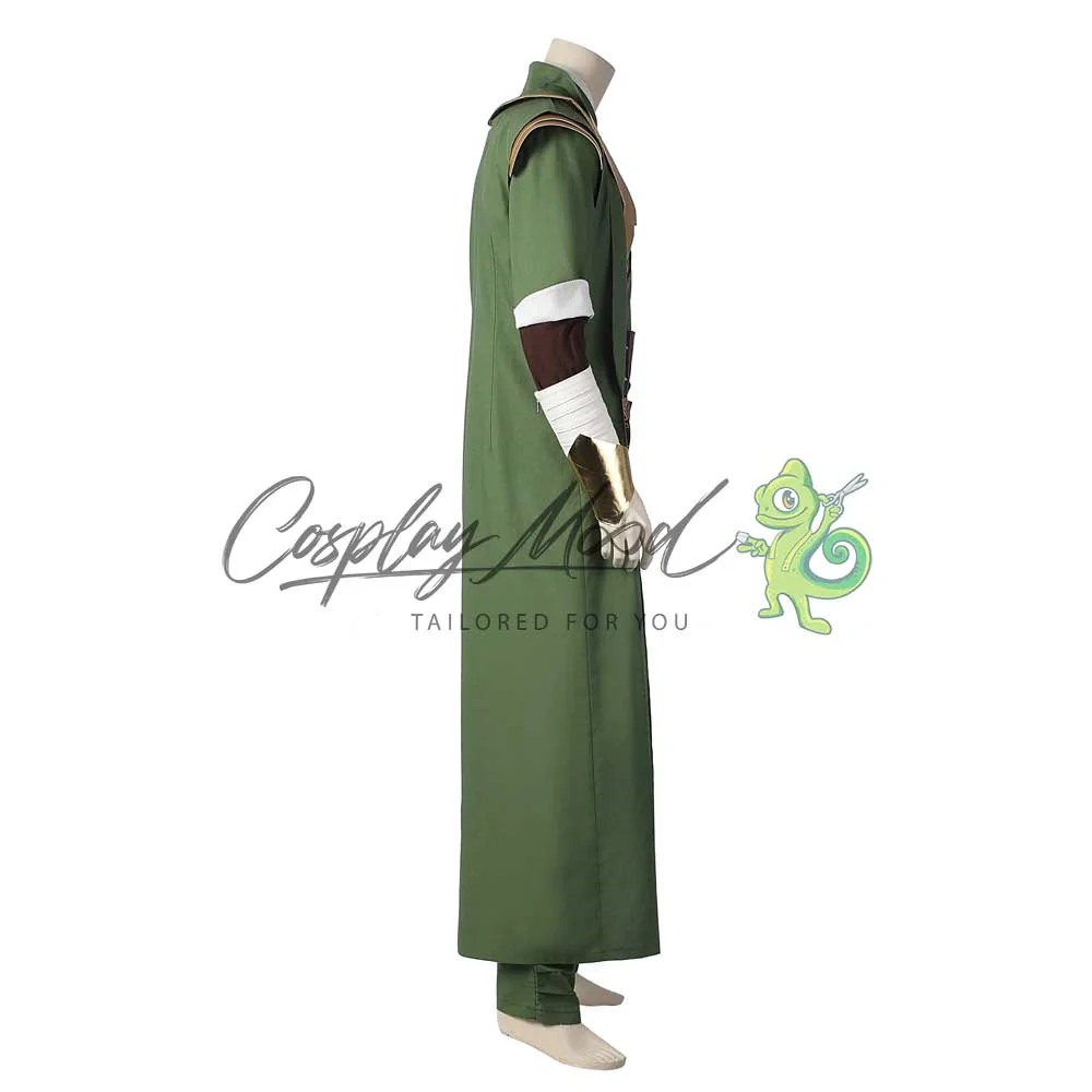Una sottoveste lunga verde con decorazioni e pantaloni verdi abbinati, due bracciali copri avambraccio, fascione in vita con decorazioni varie, sotto fascia con motivi stampati e lunga giacca verde con decorazioni applicate. Sono esclusi gli stivaletti (acquistabili separatamente su richiesta).