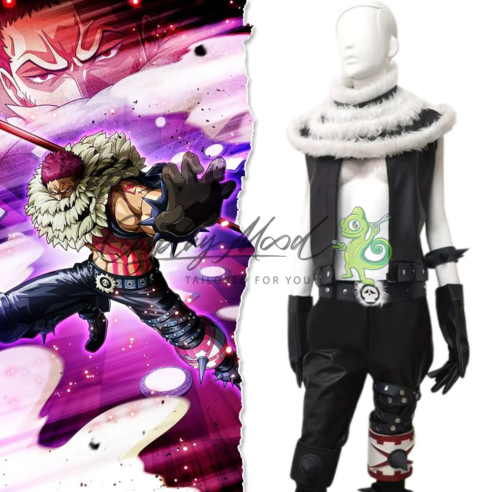 Il suo look iconico, con la sciarpa di pelliccia e l’abbigliamento nero corvino, lo rende uno dei personaggi più riconoscibili dell’universo di Eiichirō Oda. Questo costume cosplay Charlotte Katakuri One Piece è perfetto per chi vuole incarnare la forza e il carisma del guerriero della famiglia Charlotte!