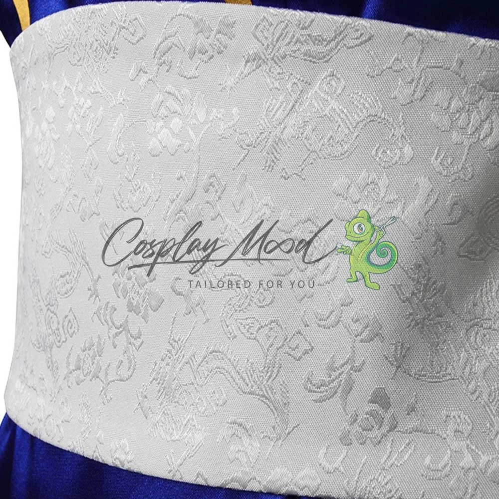 Da un abito blu con decorazioni dorate, fascia bianca in vita, bracciali con punte. Stivali abbinati disponibili (opzionali, acquistabili separatamente).