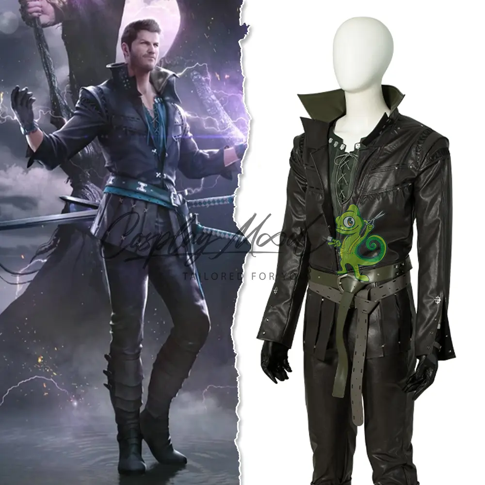 Questo costume cosplay Cidolfus Telamon Final Fantasy XVI è stato creato con un grado di somiglianza molto fedele a quello indossato dal personaggio nel videogioco. Cid è nato nelle terre oltre i mari meridionali di Valisthea. Arrivò a stabilirsi nel Regno di Waloed e una volta salvò dai banditi Benedikta, una schiava quindicenne che recentemente si era risvegliata come dominante di Garuda.