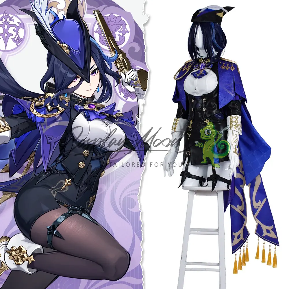 Questo costume cosplay Clorinde Genshin Impact è stato creato con cura ed attenzione, cercando di rendere il grado di somiglianza il più alto possibile rispetto a quello indossato da Clorinde nel videogame Genshin Impact. Clorinde è una Campionessa Duellante, una professione speciale di Fontaine. Una volta ha servito come guardia del corpo di Furina e ha un passato tragico con Navia.