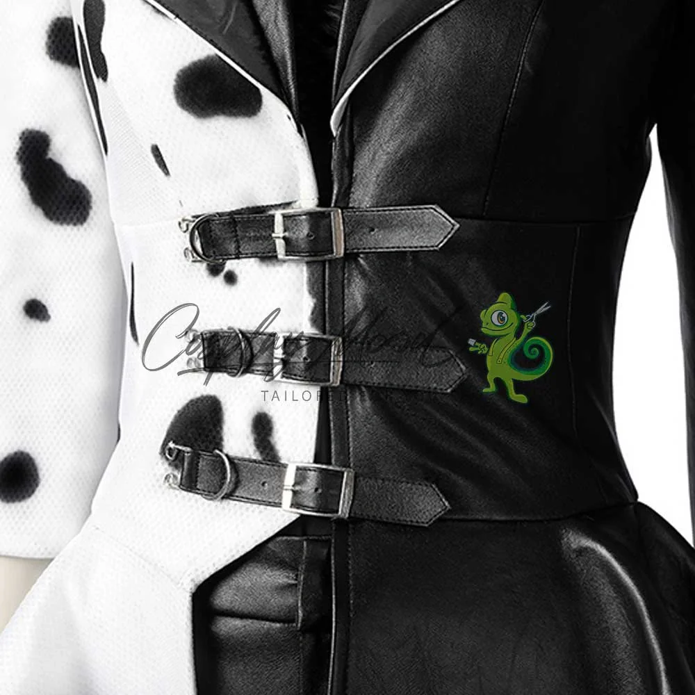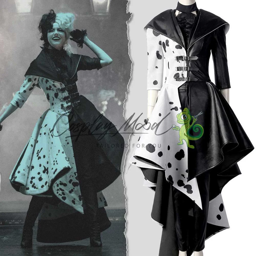 Costume Cosplay Cruella versione vestito dalmata Disney realizzato a mano e fatto su misura