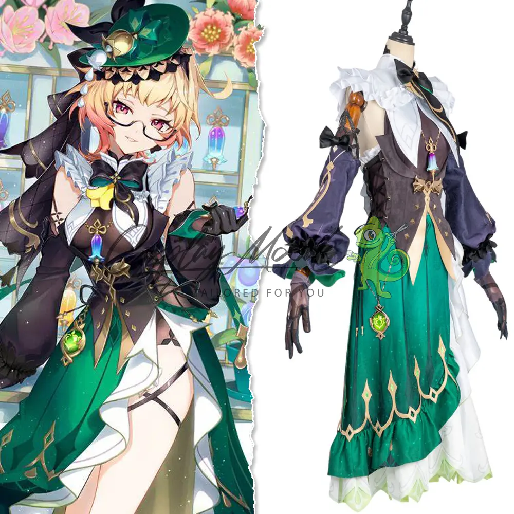 Questo costume cosplay Emilie Genshin Impact è stato creato con cura ed attenzione, cercando di rendere il grado di somiglianza il più alto possibile rispetto a quello indossato da Emilie nel videogame Genshin Impact.