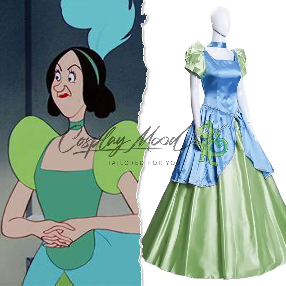 Questo costume cosplay Genoveffa Cenerentola Disney è ispirato alla terribile sorellastra di Cenerentola dall’omonimo film Disney. Anastasia e Genoveffa entrano nella vita della protagonista quando la loro madre vedova sposa il padre di Cenerentola, vedovo a sua volta. Le due sorelle risultano piuttosto brutte, sciocche e prive di qualsiasi grazia in confronto alla dolce e tenera Cenerentola, quasi loro coetanea.