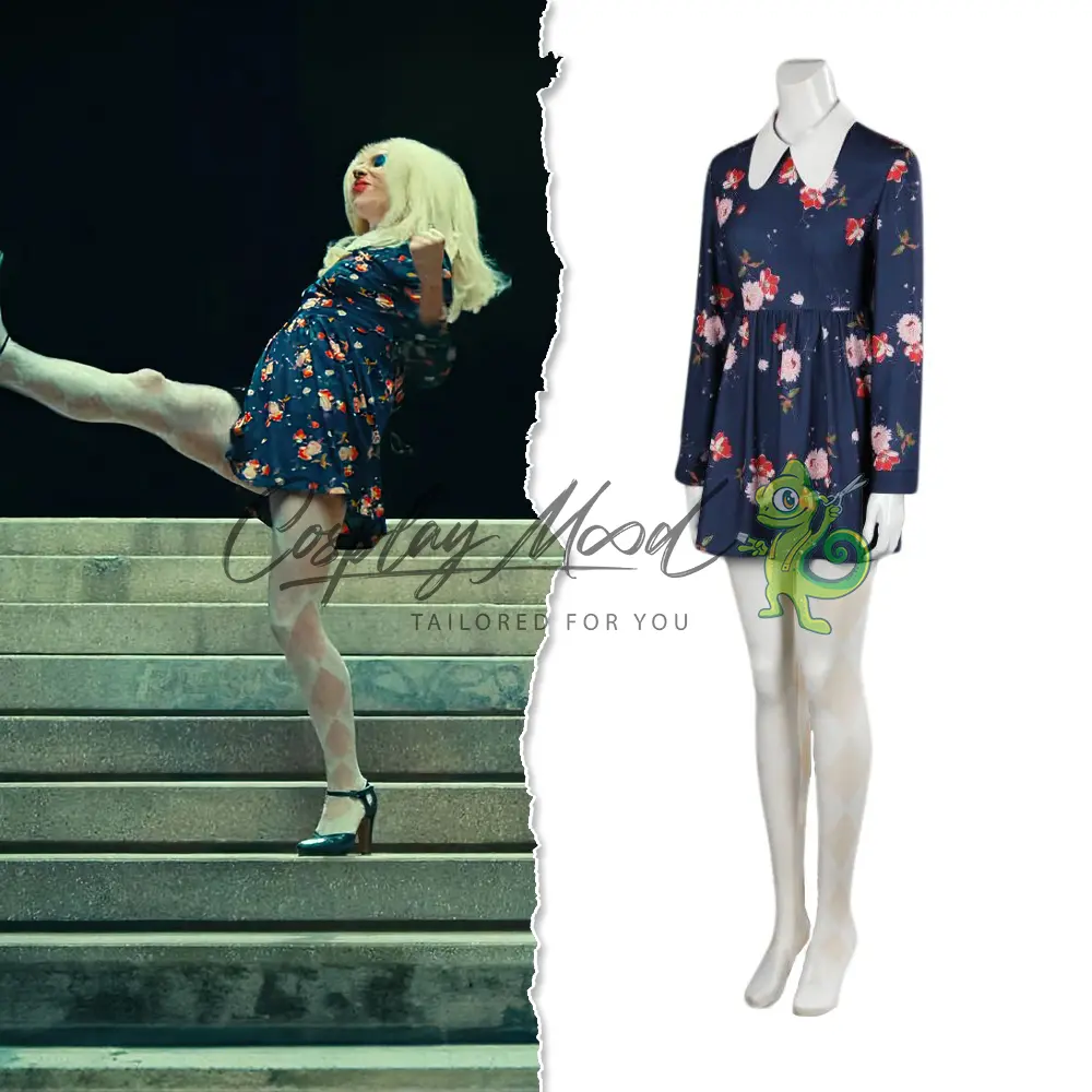 Costume Cosplay Harley Quinn Quinzel Vestito con fiori Joker: Folie à Deux DCU realizzato a mano e fatto su misura