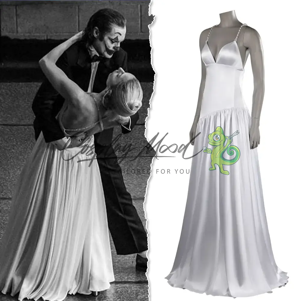 Questo costume cosplay Harley Quinn Quinzel Vestito elegante Joker: Folie à Deux DCU è stato realizzato da costumisti professionisti cercando di ricrearlo nella maniera più simile possibile all’originale e riproduce quello indossato da Harley Quinn nel film The Joker in uscita nel 2024.