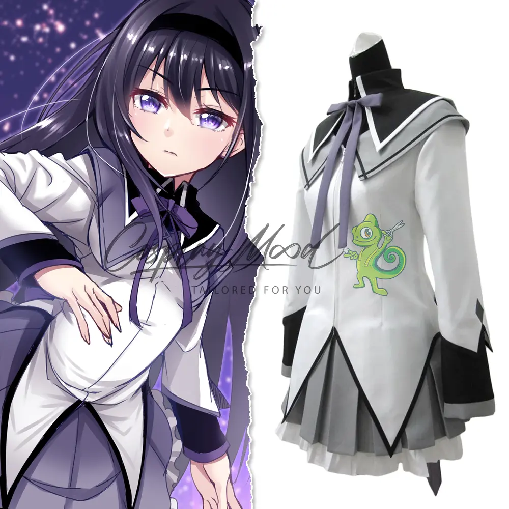Il qui presente costume cosplay Homura Akemi Puella Magi Madoka Magica è stato creato da sarti professionisti in modo tale da meglio riprodurre quello indossato da Homura Akemi nel manga ed anime Puella magi Madoka Magica. L’autorappresentazione di Homura come una ragazza magica fredda, antisociale e indurita che manca di empatia non è in realtà altro che una facciata che ha costruito per sè stessa; quei tratti non facevano parte della sua personalità originale. Homura aveva una malattia cardiaca che la costrinse a letto per molto tempo, probabilmente portandola a diventare asociale.