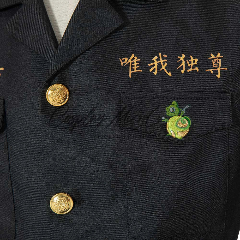 Se il tuo desiderio è quello di fare cosplay di questo personaggio, questo costume cosplay Ken Ryuguji Tokyo Revengers fa al caso tuo perché riproduce al meglio gli abiti indossati da Ken Ryuguji in Tokyo Revengers. Come il presidente, anche il vicepresidente Ken Ryuguji (conosciuto anche come Draken) è un individuo piuttosto selvaggio. Ama lottare e gli piace incontrare avversari forti. È scortese con coloro che considera al di sotto di lui e chiarisce che non gli piacciono. A differenza di Mikey, Draken è il più maturo e logico dei due. Quando i due vengono rimproverati in ospedale dal padre di una ragazza che è stata aggredita da Moebius, Draken è colui che costringe Mikey a scusarsi, comprendendo la rabbia dell’uomo e che era meglio ricevere la sua rabbia senza una parola invece di cercare di difendersi. Quando Pah-chin decide di prendersi la responsabilità di Toman facendosi deliberatamente arrestare, Mikey cerca di convincere Pah-chin a scappare. Tuttavia, Draken lo ferma, dicendo che è la cosa giusta da fare per Pah-chin.