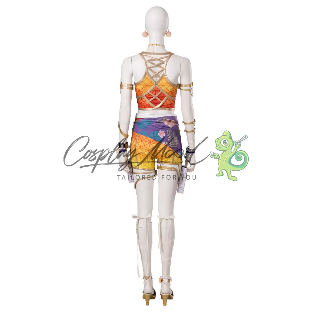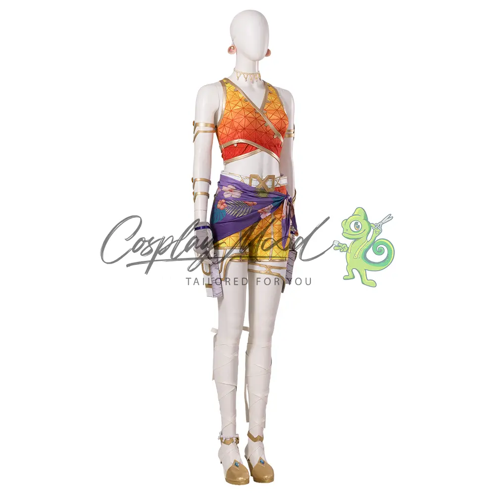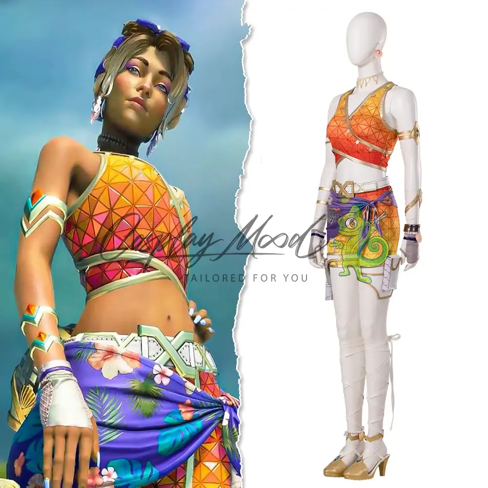 Il costume cosplay Loba Andrade Sun Squad Skin Apex Legends che vedi in questa pagina, è stato realizzato per assomigliare il più possibile a quello indossato dal personaggio del videogioco di Apex Legends in questa skin. Loba Andrade è nata nel 2699 da ladri professionisti, Alanza e Marcos Andrade. Loba non ha avuto un pianeta natale da piccola: viaggiava spesso con i suoi genitori durante le loro missioni, imparando il mestiere da due maestri.
