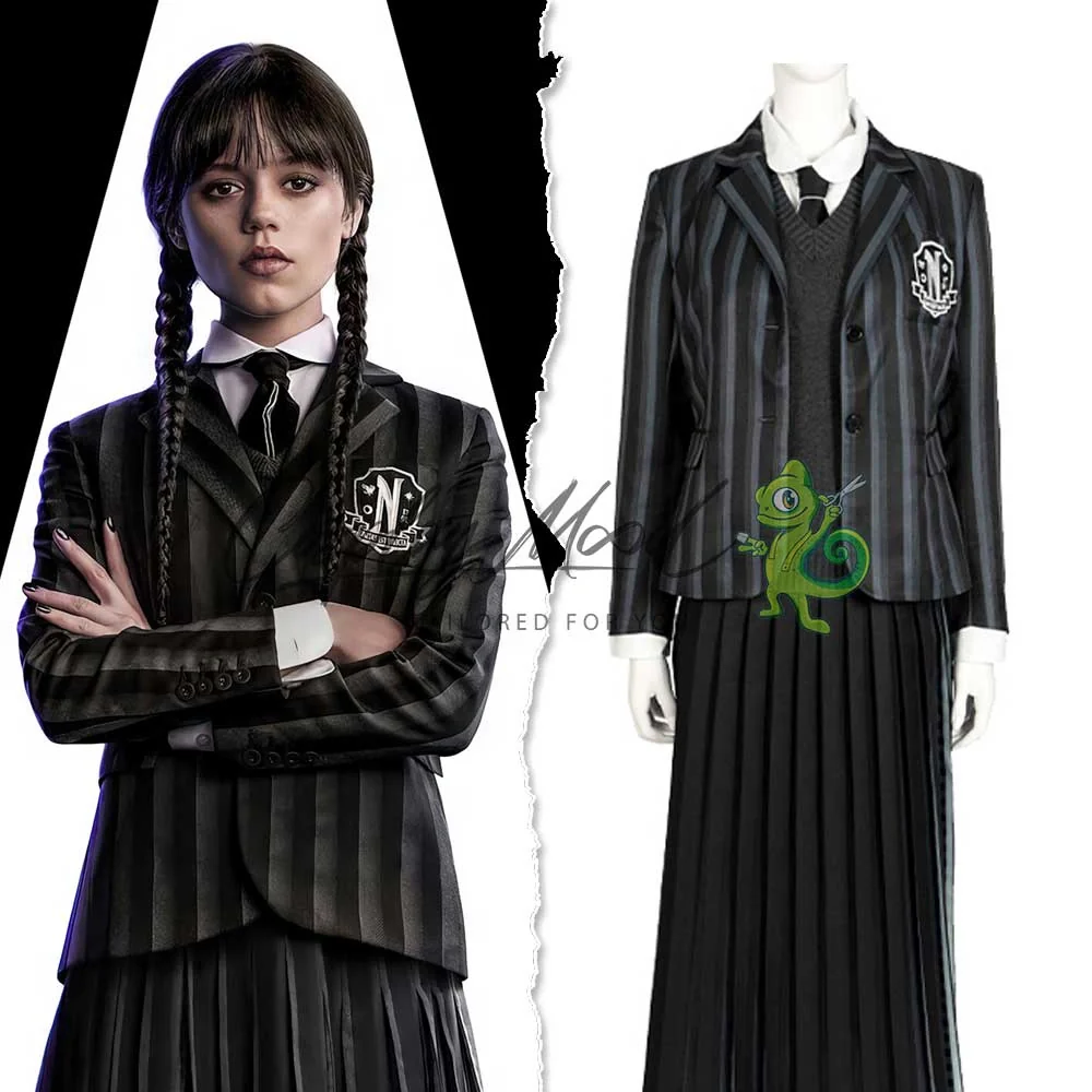 Costume Cosplay Mercoledì Addams divisa scolastica Wednesday Netflix