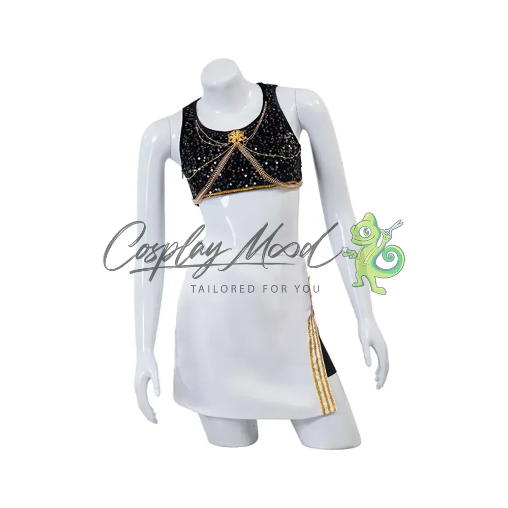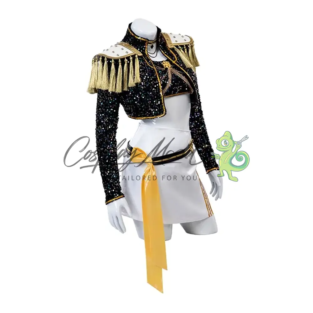 Questo costume cosplay Mira Golden KPop Demon Hunters Netflix è lavorato con la cura e l’attenzione necessaria a ricreare l’outfit del tuo personaggio preferito della serie. È la ballerina principale, visual e coreografa del famoso gruppo femminile K-Pop HUNTR/X, composto anche dalle sue amiche Rumi e Zoey. Crede nel profondo di non essere degna della famiglia o degli amici perché si sente ancora una bambina problematica.