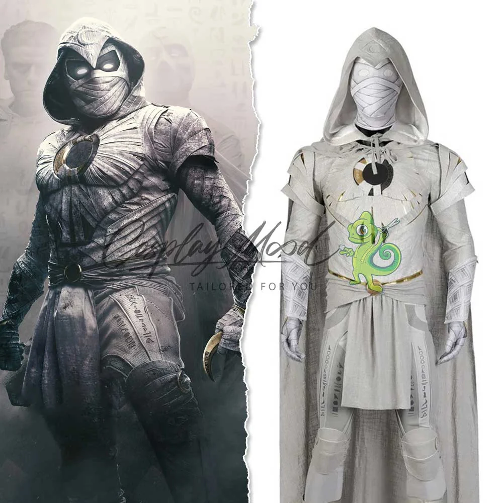 Questo costume cosplay Moon Knight classico Marvel è creato in maniera molto fedele rispetto a quello indossato dall’eroe della miniserie in onda su Disney+. Moon Knight è interpretato da Oscar Isaac. Le sue origini sono quasi le stesse dei fumetti, ma in questo caso Marc Spector ha acquisito un disturbo dissociativo dell’identità da bambino a causa dagli abusi che subiva dalla madre, che lo incolpava della morte di suo fratello minore.