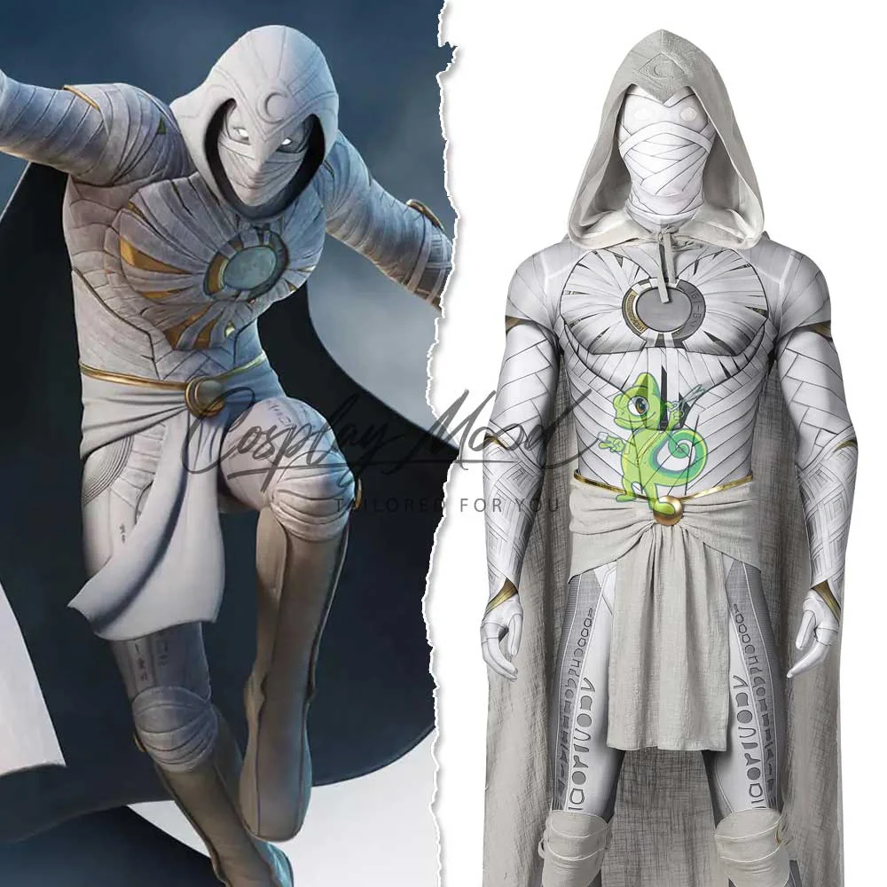 Questo costume cosplay Moon Knight Marvel è creato in maniera molto fedele rispetto a quello indossato dall’eroe della miniserie in onda su Disney+. Moon Knight è interpretato da Oscar Isaac. Le sue origini sono quasi le stesse dei fumetti, ma in questo caso Marc Spector ha acquisito un disturbo dissociativo dell’identità da bambino a causa dagli abusi che subiva dalla madre, che lo incolpava della morte di suo fratello minore.