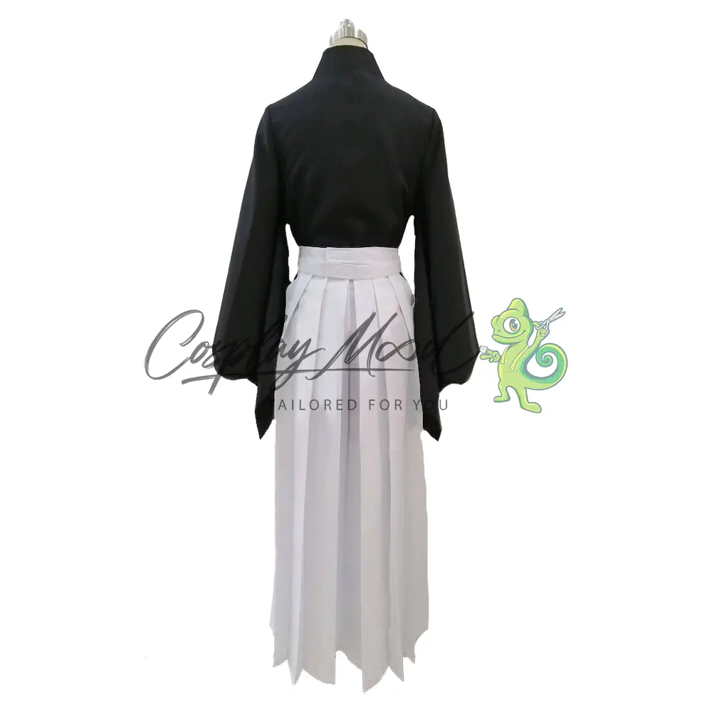 Top nero, veste bianca, hakama bianchi e fascia in vita dello stesso colore.