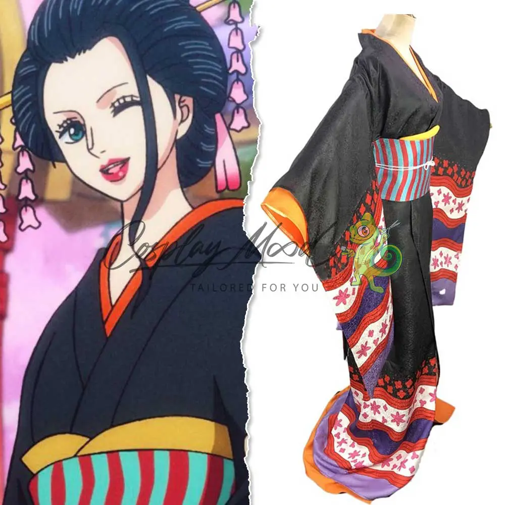 Costume Cosplay Nico Robin Kimono Nero Saga Wano One Piece realizzato a mano e fatto su misura