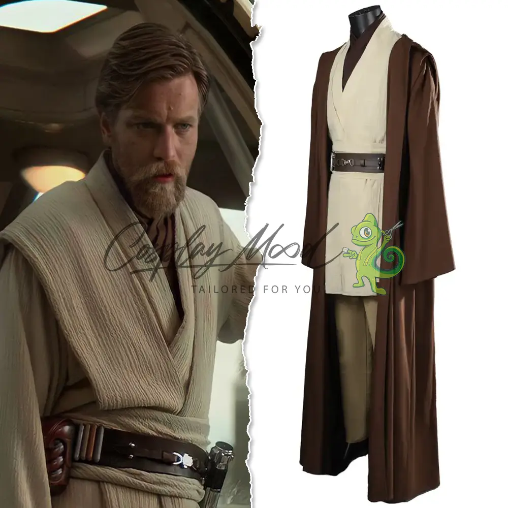 Questo costume cosplay Obi-Wan Kenobi Star Wars La Vendetta dei Sith è realizzato in modo tale da essere il più fedele possibile rispetto a quello indossato da Obi-Wan, personaggio storico della saga di Star Wars. Inizialmente Padawan di Qui-Gon Jinn, insieme al suo Maestro è coinvolto nella battaglia di Naboo, contro l’esercito dei droidi della Federazione dei Mercanti.