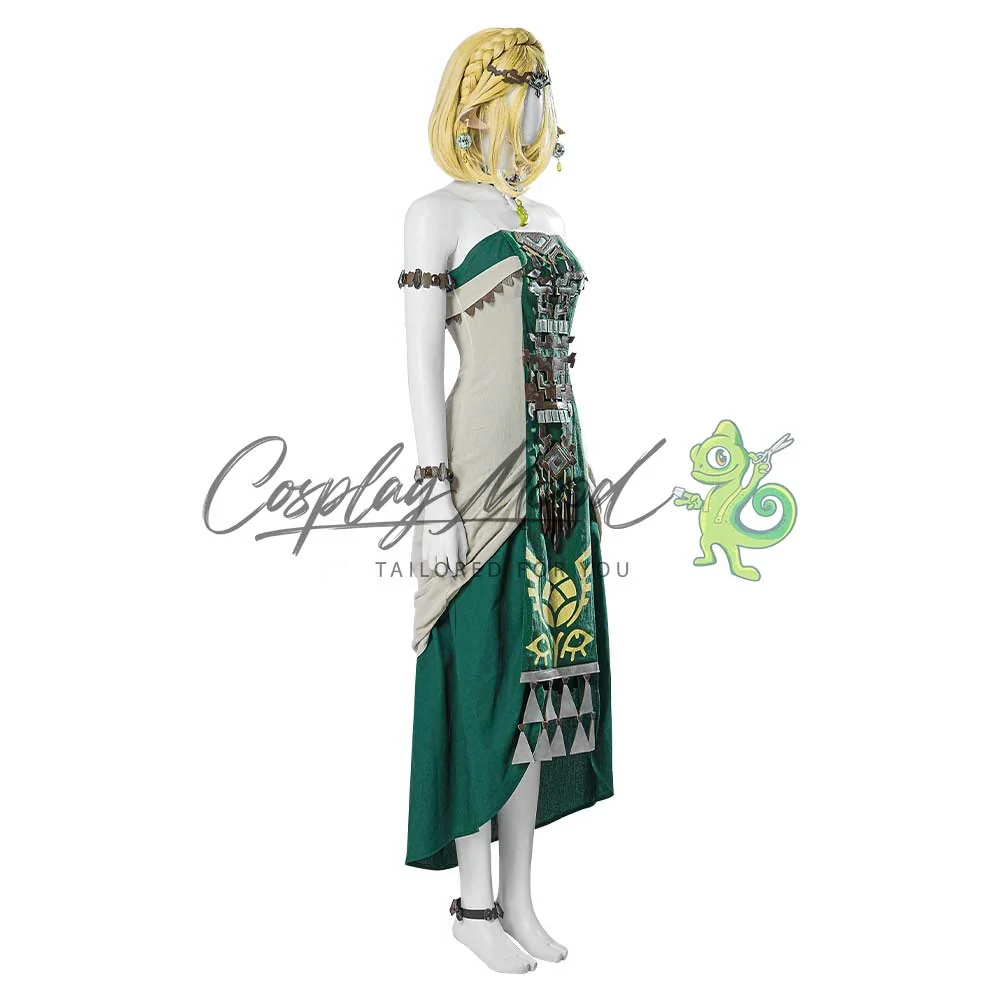 Questo costume cosplay Principessa Zelda vestito verde The Legend of Zelda Tears of the Kingdom è confezionato in modo tale da risultare molto fedele all’originale ed ispirato a Zelda, la nobile principessa che dà il nome alla famosa saga di videogiochi The Legend of Zelda. Figlia del Re di Hyrule, Zelda è la principessa del regno. Possiede un frammento del leggendario oggetto chiamato Triforza, più precisamente la Triforza della Saggezza. Nonostante la serie porti il suo nome, la principessa viene spesso rapita, soprattutto da Ganon, in possesso della triforza del potere.
