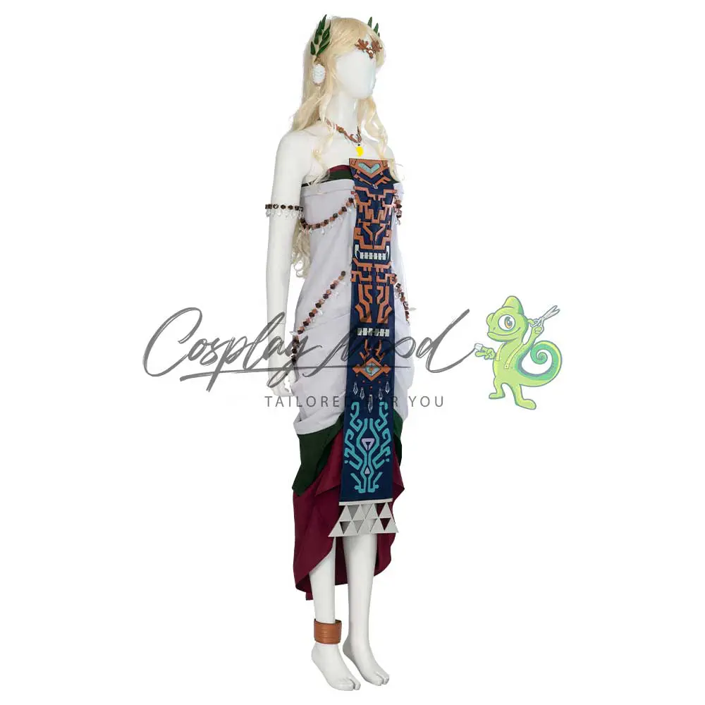 Questo costume cosplay Regina Sonia The Legend of Zelda Tears of the Kingdom è confezionato in modo tale da risultare molto fedele all’originale ed ispirato a Sonia, la nobile regina presente in questo capitolo della saga. È la prima regina di Hyrule, che ha fondato il regno raffigurato in Breath of the Wild e Tears of the Kingdom insieme al re Zonai Rauru.