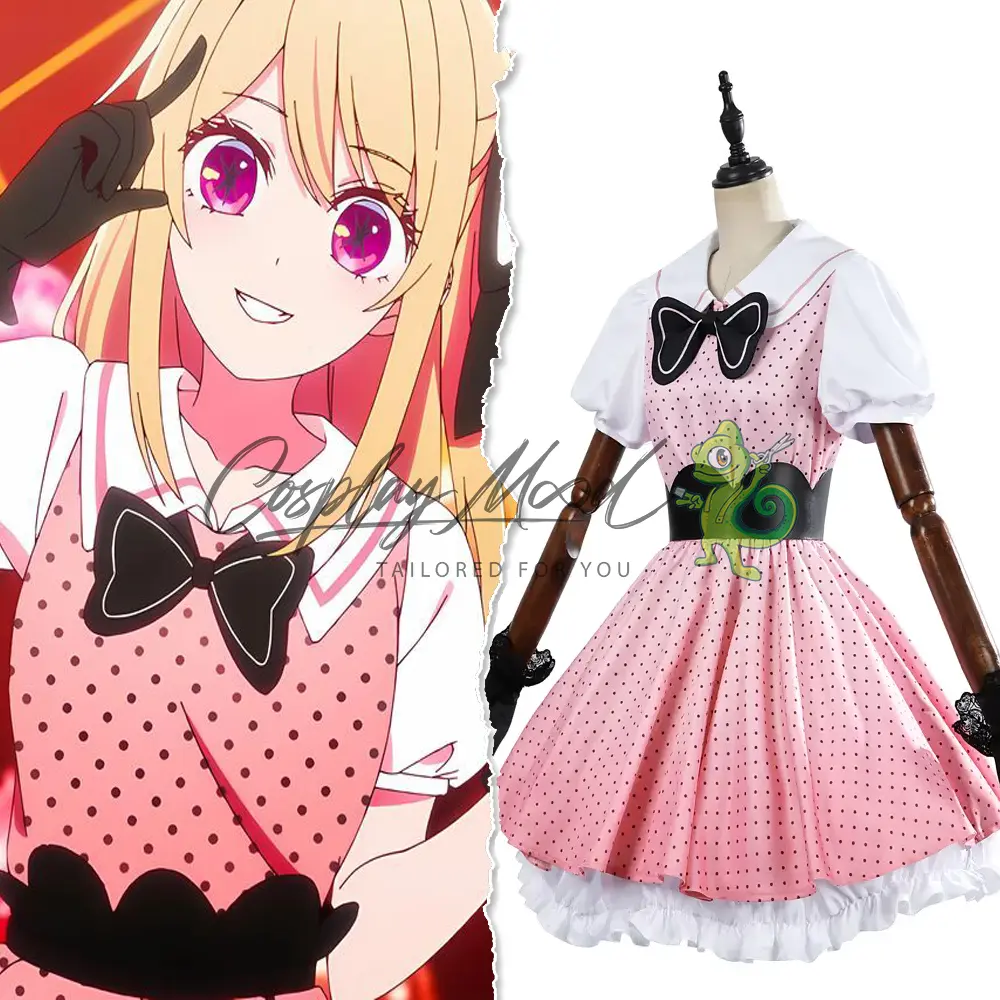 Questo costume cosplay Ruby Hoshino Pink Polka Outfit Oshi no Ko Stagione 2 è stato creato da costumisti professionisti e rispecchia quello indossato da Ruby Hoshino nel manga ed anime Oshi no Ko.