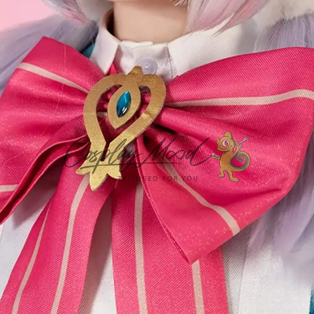 Questo costume cosplay Sigewinne Genshin Impact è stato creato con cura ed attenzione, cercando di rendere il grado di somiglianza il più alto possibile rispetto a quello indossato da Sigewinne nel videogame Genshin Impact. Sigewinne è la caposala dell’infermeria della Fortezza di Meropide. È una Melusine, anche se con un “corpo speciale” che è fisiologicamente più vicino a quello umano.