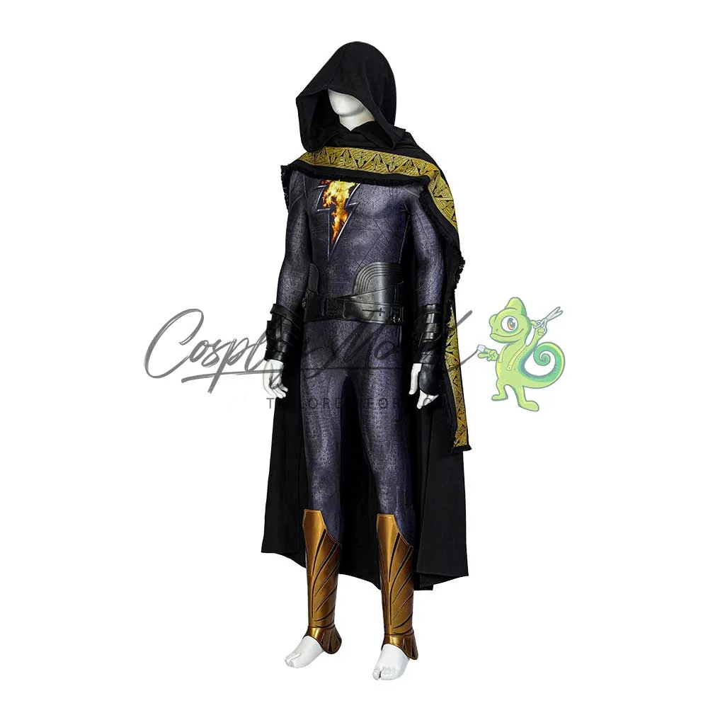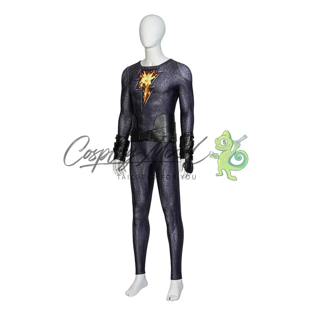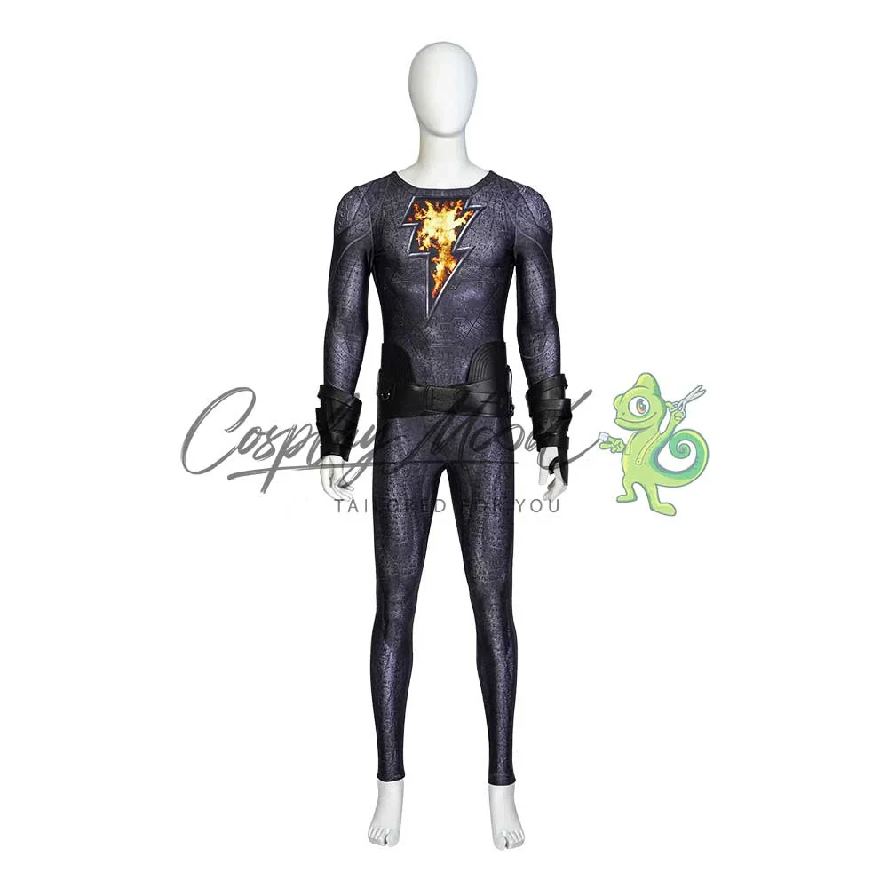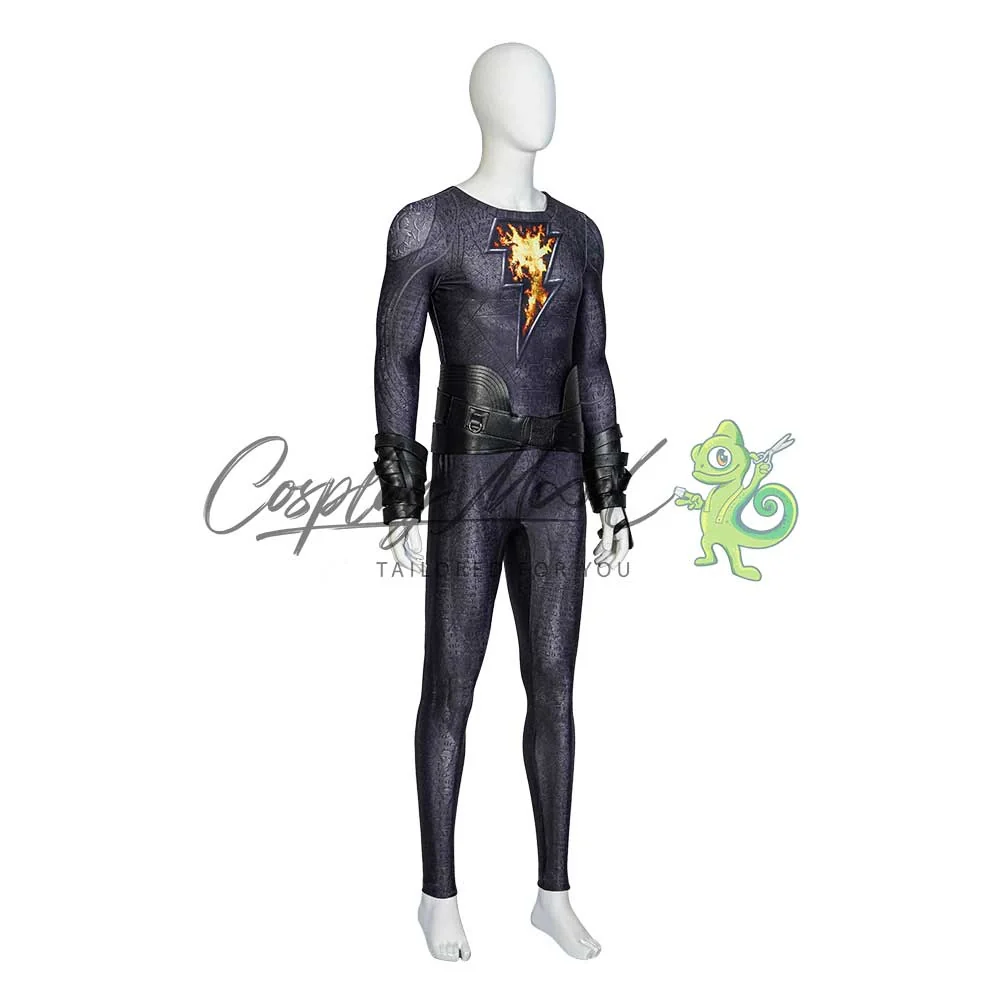 Una tuta elasticizzata stampata con fulmine sul petto ed altri dettagli del costume di Black Adam, oltre a mantello ed accessori in pelle PU per copribraccia e cavigliere.