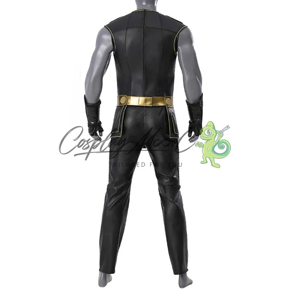 Una sottomaglia nera, una parte superiore in pelle PU, pantaloni coordinati, cintura in vita, guanti e mantello con inserti in pelliccia. Stivali esclusi (ma ordinabili a parte su richiesta).