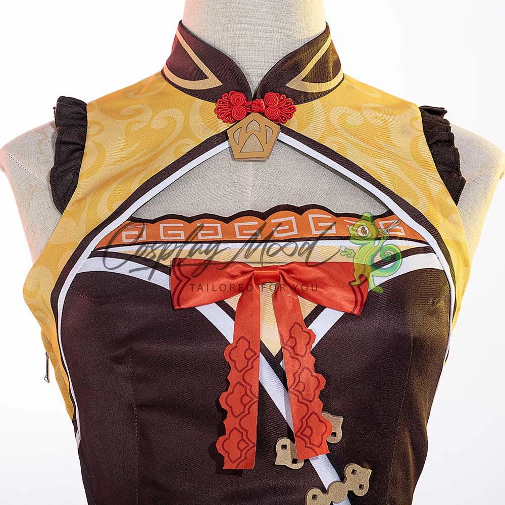 Questo costume cosplay Xiangling Genshin Impact è stato creato con cura ed attenzione, cercando di rendere il grado di somiglianza il più alto possibile rispetto a quello indossato da Xiangling nel videogame Genshin Impact. Mao Xiangling è un personaggio di tipo pyro giocabile in Genshin Impact. È la capocuoca del ristorante Wanmin e lo gestisce insieme a suo padre, lo chef Mao. Come chef, Xiangling non ha paura di provare diverse ricette o ingredienti “esotici”… rendendo i suoi piatti a volte piuttosto unici. Se desideri fare il cosplay di questo personaggio ispirato al videogioco Genshin Impact, questo costume cosplay ti permetterà di farlo perché grazie alla tua interpretazione cosplay, i vari dettagli del costume con i suoi materiali ricercati e la lavorazione derivata dalla professionalità e passione dei nostri costumisti amanti del mondo del cosplay, creeranno un mix unico per il successo del tuo cosplay.