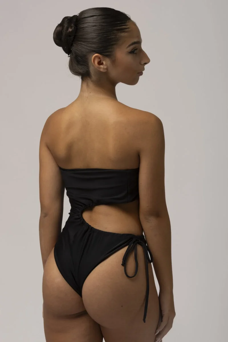Costume mare con apertura su un lato. Laccetto che regola l’apertura.