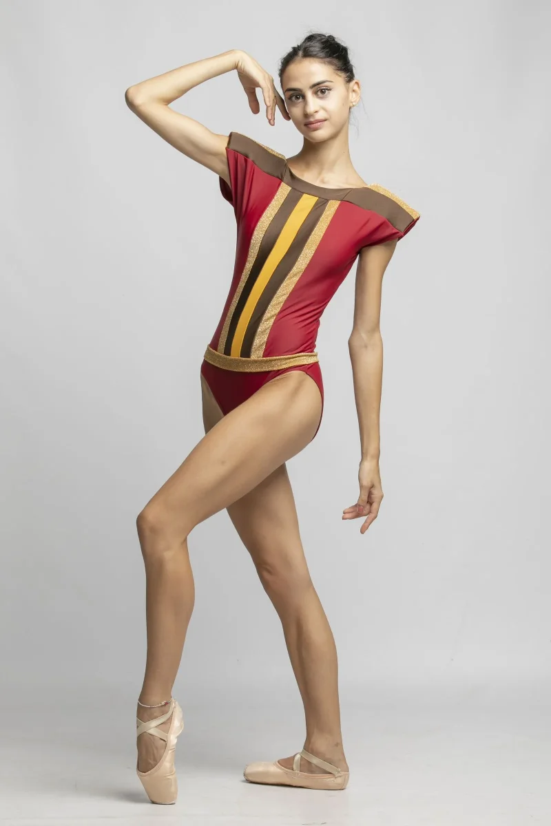 Body giromanica con spalline di gommapiuma, inserti colorati, gonnellina a mezza ruota