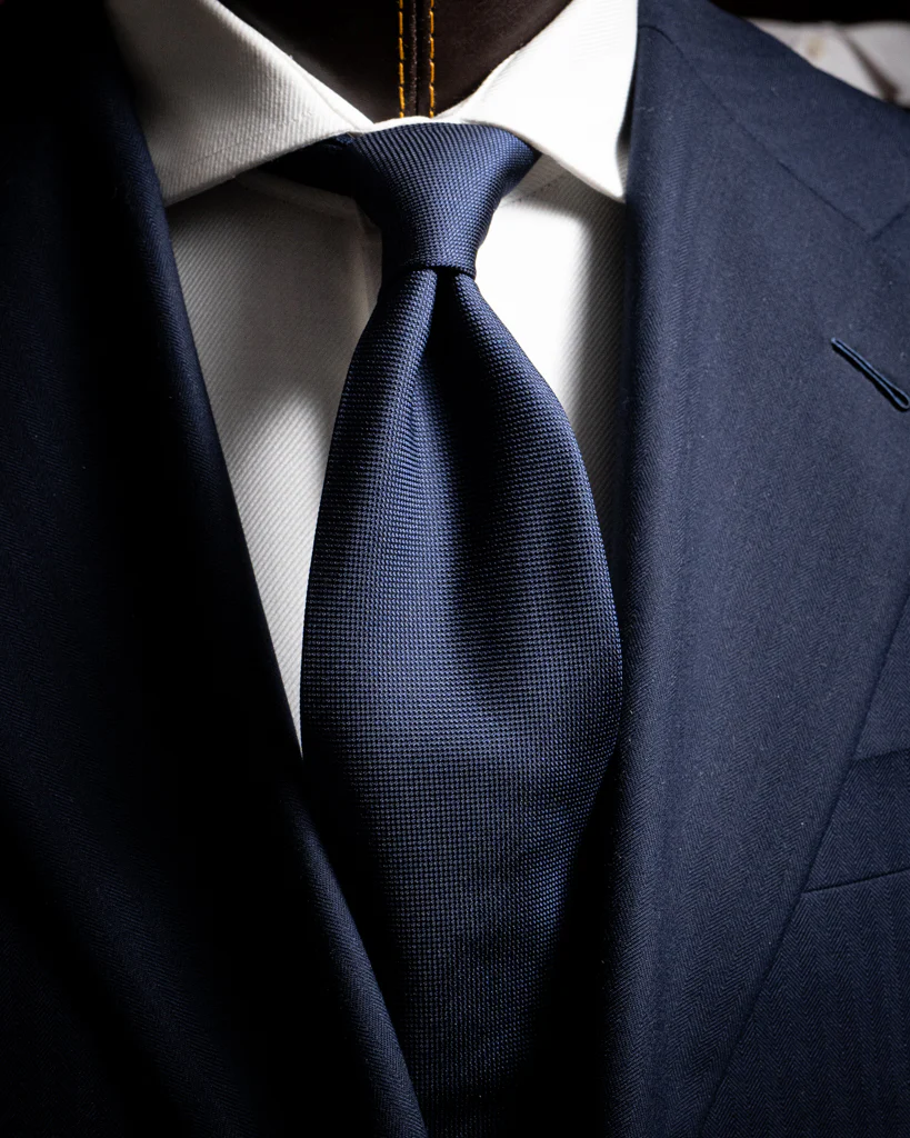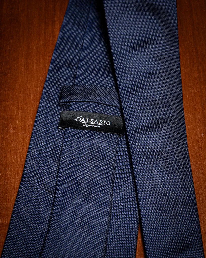 Il carattere distintivo di questo modello risiede nella trama Piquet, un’armatura che crea un delicato effetto a rilievo. Questa struttura non solo dona corpo alla cravatta, ma permette alla luce di riflettersi in modo discontinuo, evitando l’aspetto piatto delle sete lisce tradizionali.
