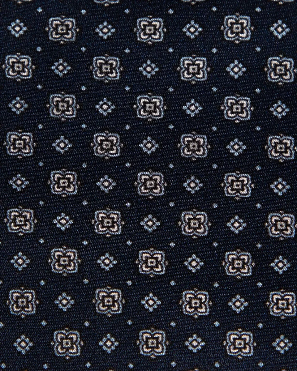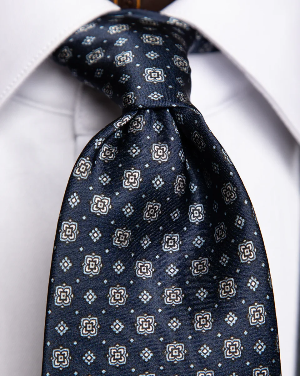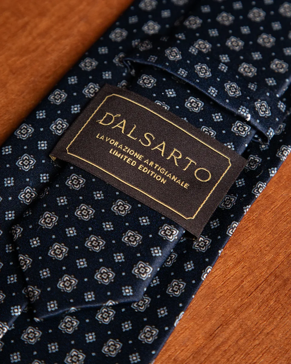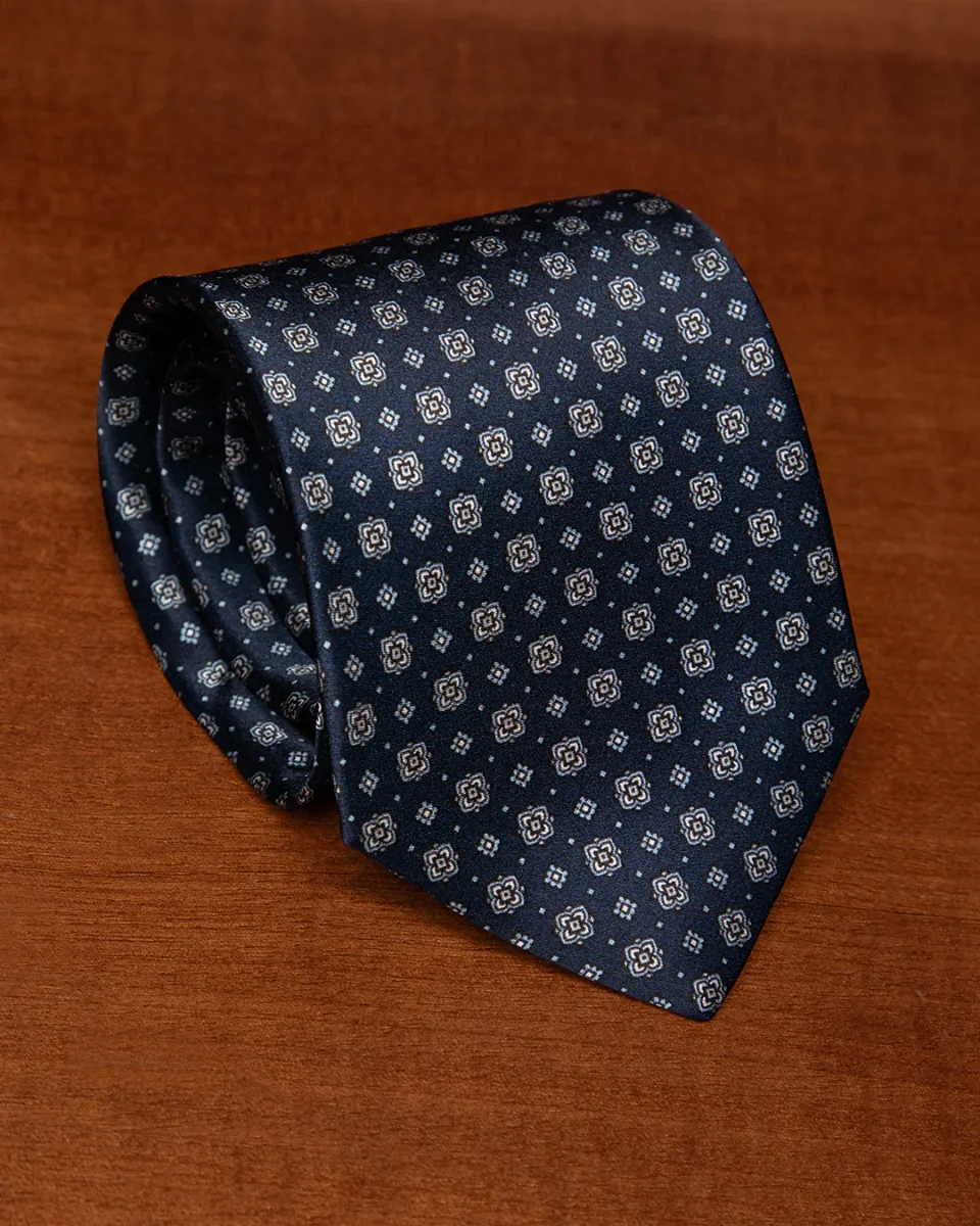 La Cravatta Blu Scuro con Microfantasia è il pilastro del guardaroba formale contemporaneo, un accessorio che bilancia l’autorità del blu scuro con la ricercatezza di un pattern millimetrico.