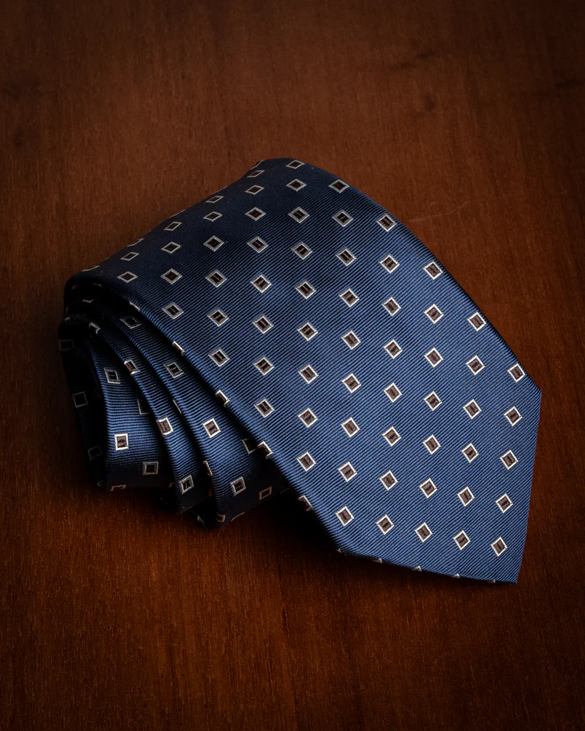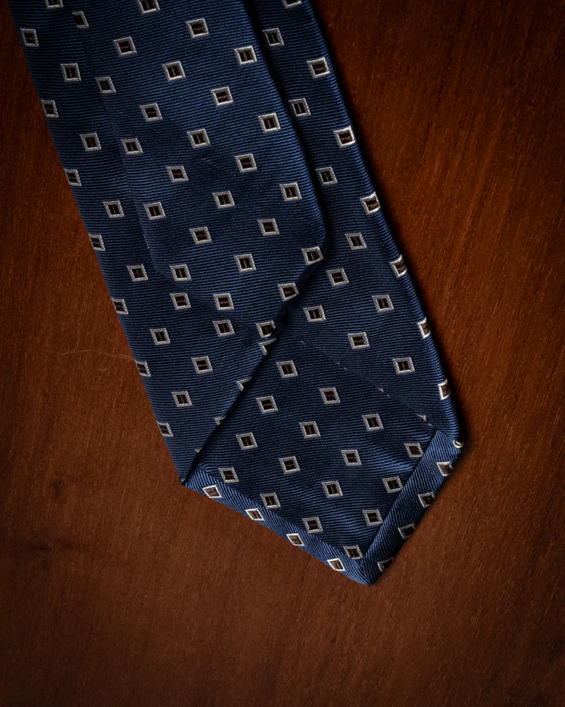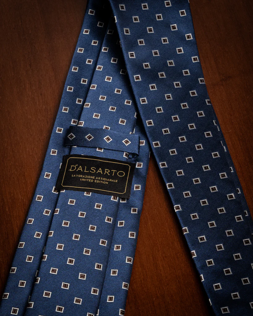 Questa cravatta rappresenta un esercizio di stile raffinato, dove la profondità del Blu Oltremare incontra la calore della terra attraverso una griglia a Quadri Castagna. Non è una semplice fantasia geometrica, ma un dialogo tra tonalità complementari che conferisce all’accessorio una dignità architettonica, ideale per completare un guardaroba maschile di alto profilo.