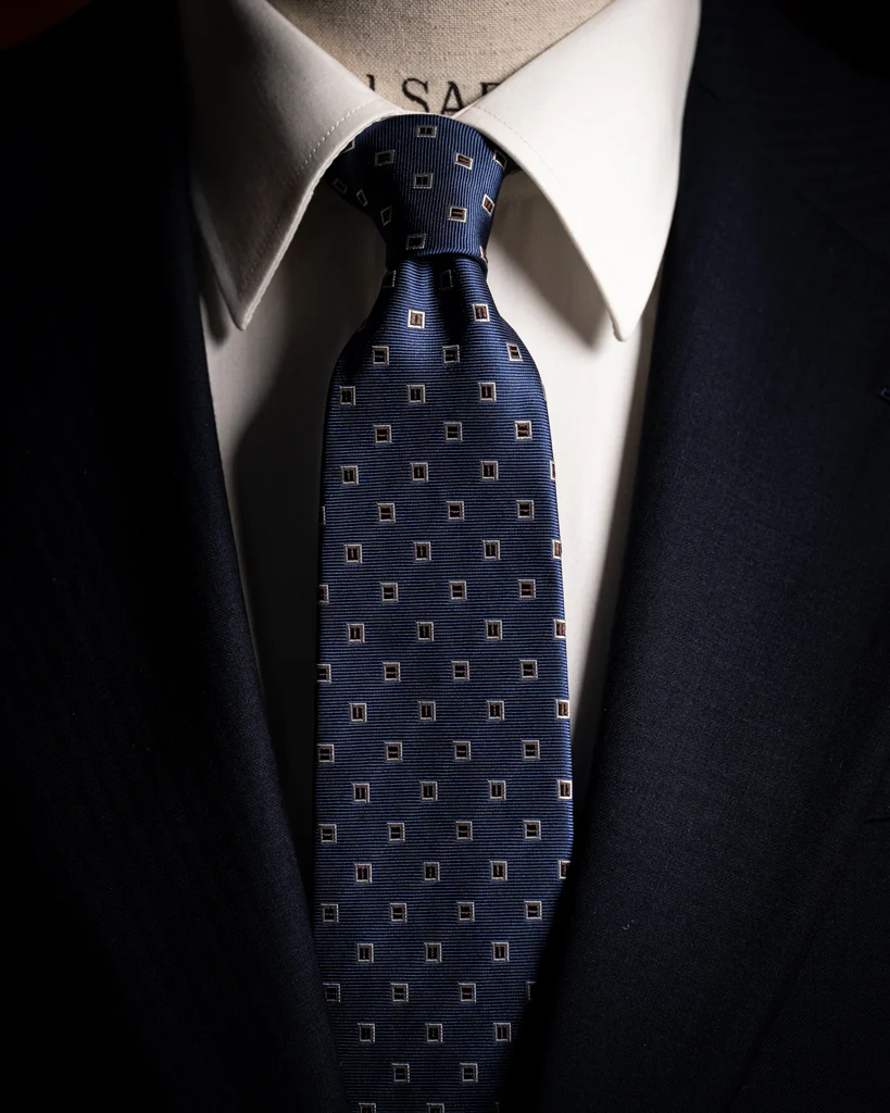 - Architettura del Nodo: La struttura della seta permette di realizzare nodi dalla forma scultorea e piena. La consistenza della trama agevola la formazione della “fossetta” , dettaglio imprescindibile per l’estetica sartoriale
