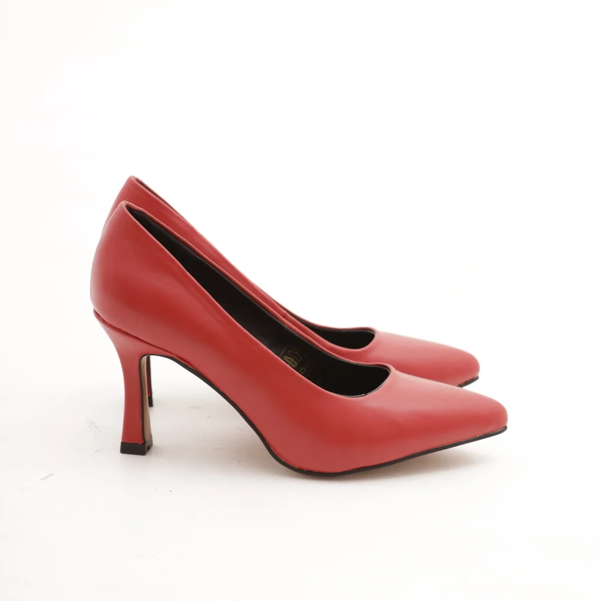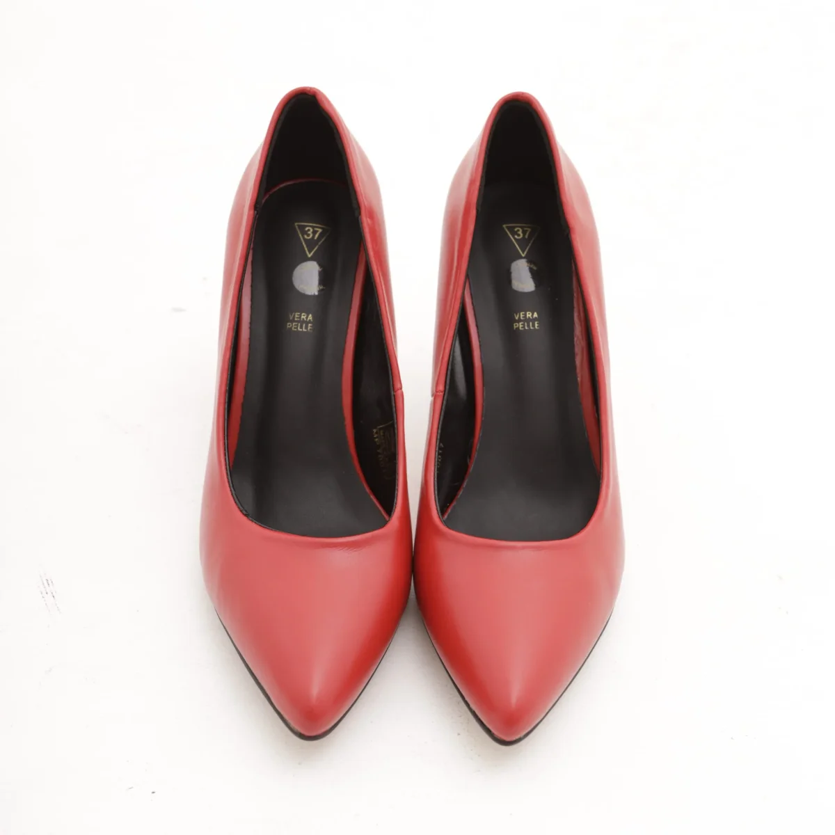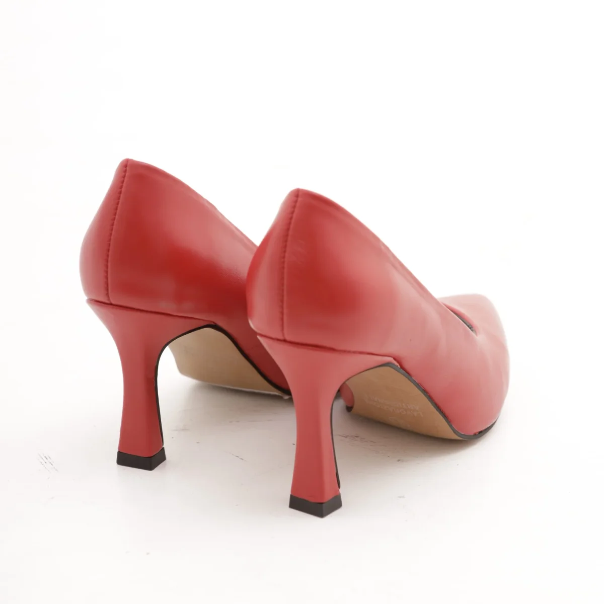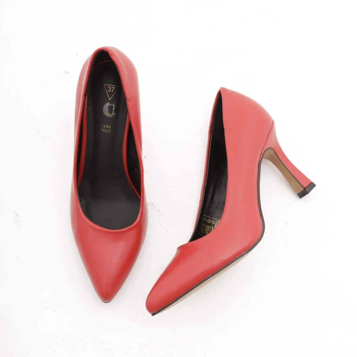 Modello Decolletè realizzato in eco-pelle Rosso. Disponibile anche nei colori Nero e Beige. Sottopiede in vera pelle.