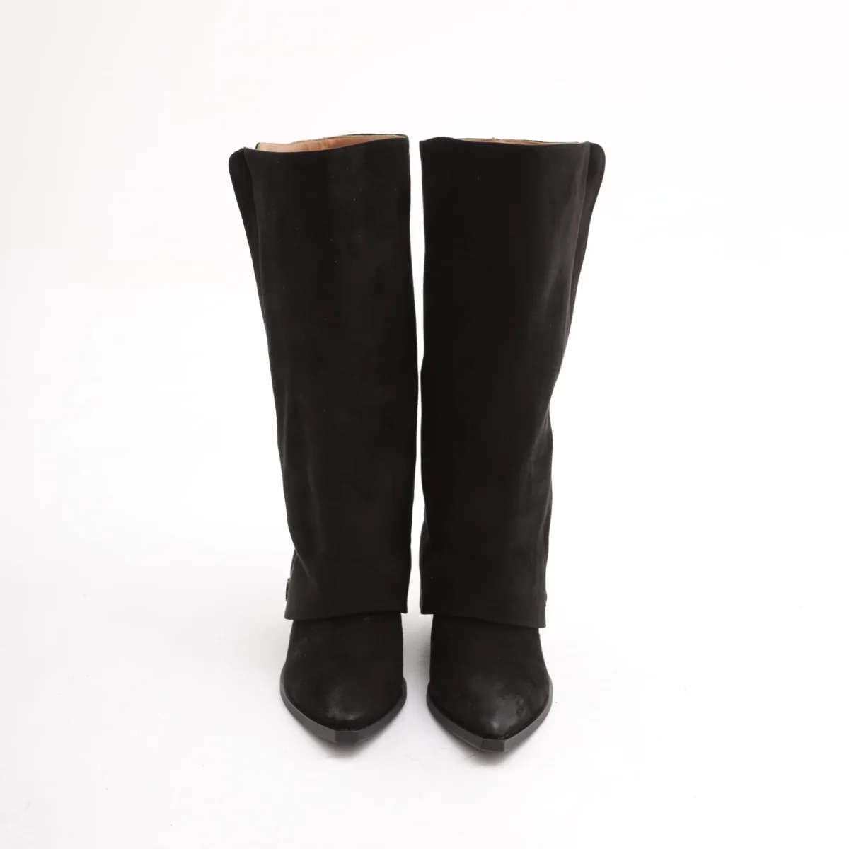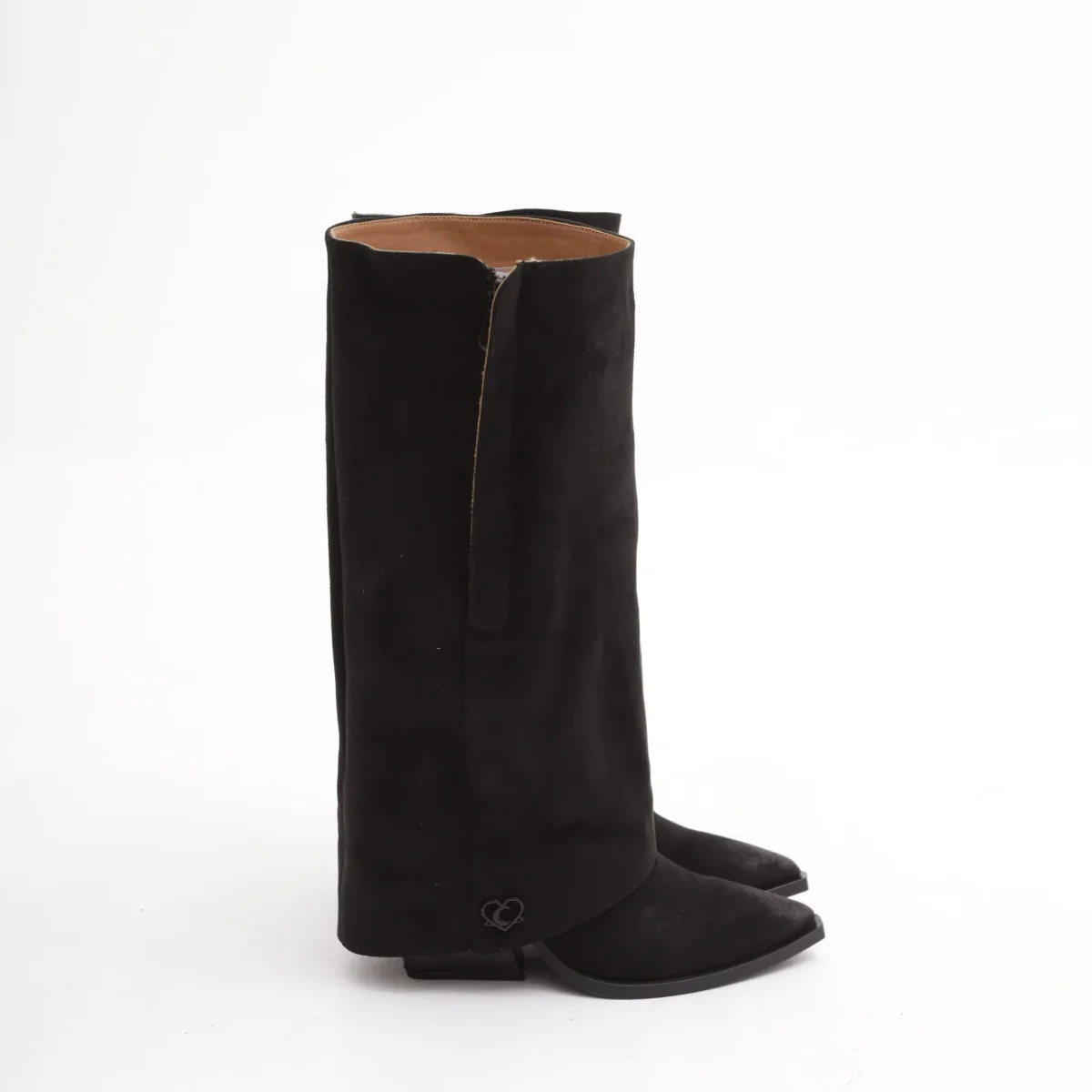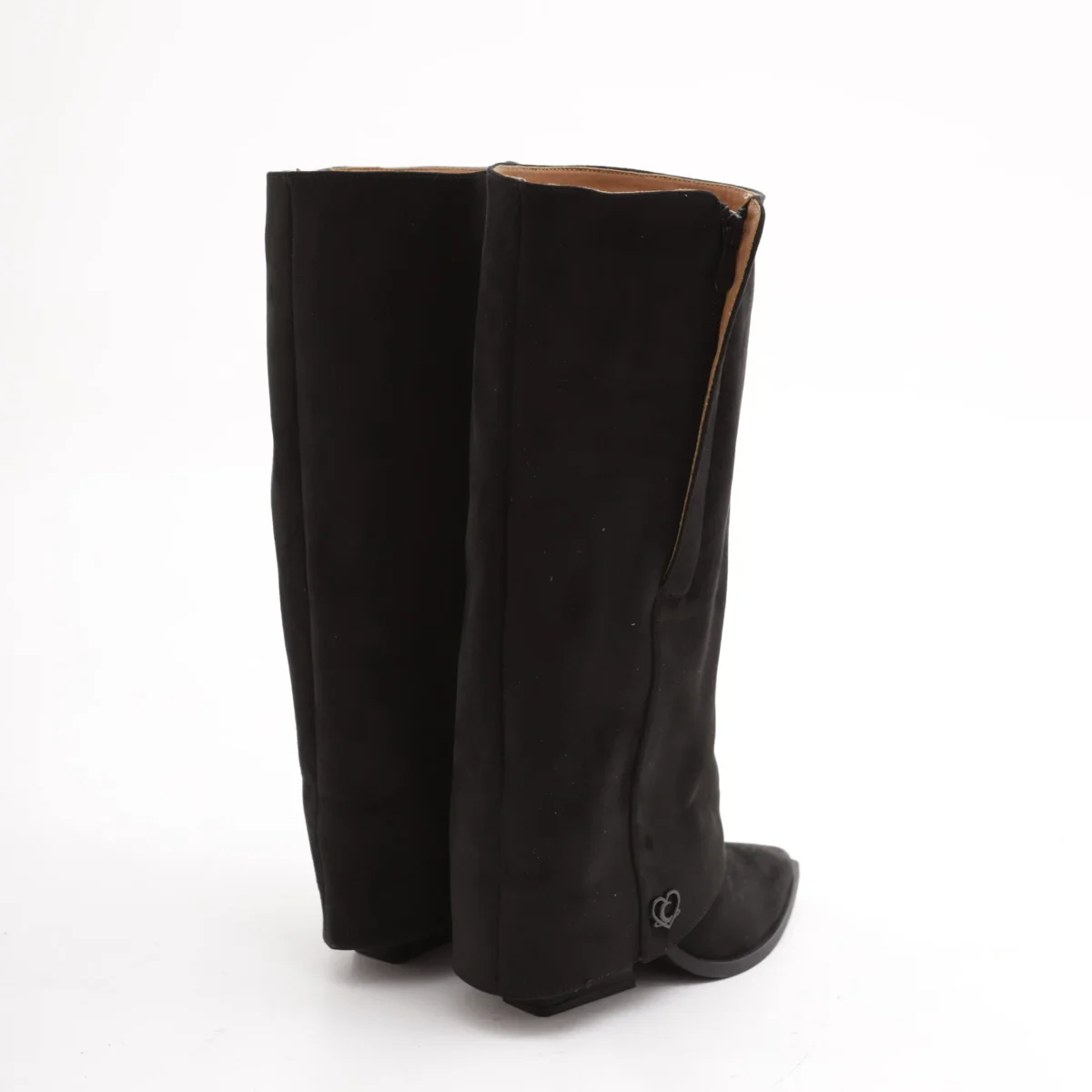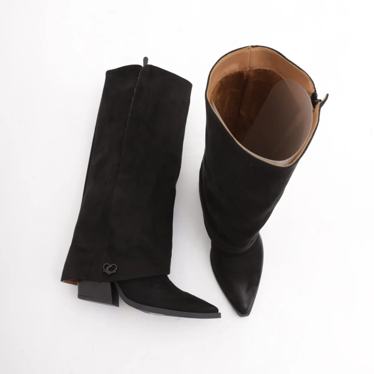 Scarpa con tacco bicolore realizzata in eco-pelle Cuoio. Decorato con fiocchietto. Disponibile in altri colori Nero e Panna.
